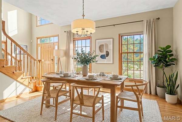 Walking through the front door, you’re greeted by a grand two-story foyer and a stunning staircase with double access points—it’s not just beautiful, it makes the whole house flow perfectly. If you work from home, you’ll love the classic pocket doors that lead to a quiet office. Just past those, another set of elegant pocket doors opens into a cozy living room, complete with a wood-burning fireplace and gorgeous wood-framed windows that keep everything feeling warm and inviting.