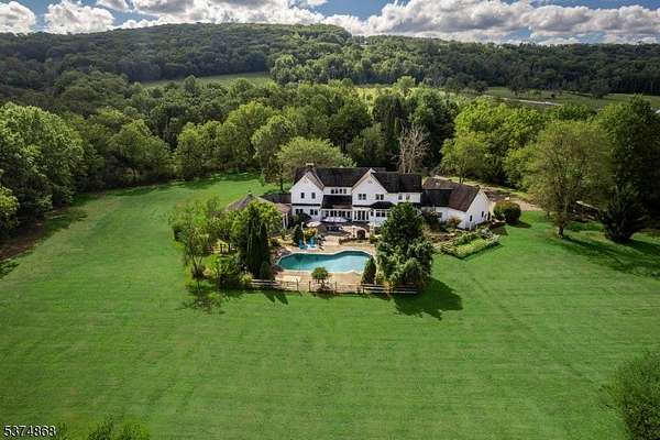 Set on over six pastoral acres, this custom-designed Colonial offers both space and functionality. Located near Columbia Trail for cycling, jogging, and horseback riding, as well as the South Branch of the Raritan River for fishing, the setting is well-suited for outdoor activities. The property also provides ample acreage for equestrian use. Inside, a two-story foyer with a sweeping oak staircase introduces an open floor plan with sunlit living and dining rooms, a cherry-cabinet kitchen with granite tile counters and center island, and a leisure room overlooking the backyard. Outdoor amenities include a large in-ground pool, stone paver walkways, landscaped grounds, and generous patio areas designed for gatherings.This residence spans over 4,700 sq. ft. and includes 4 bedrooms, 3 full and 2 half baths. A first-floor suite with kitchen, full bathroom, radiant heat and independent AC is handicap accessible and offers flexible living options. Additional features include oak hardwood floors, custom trim, French doors, a three-car garage, and a partially finished lower level.