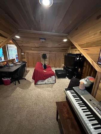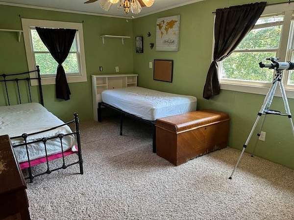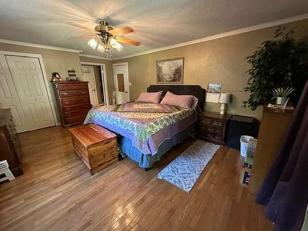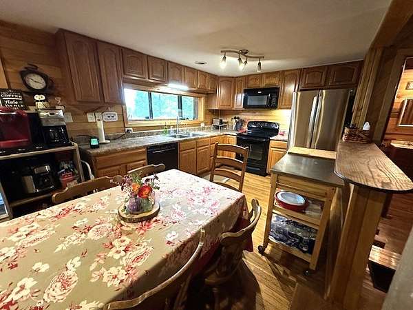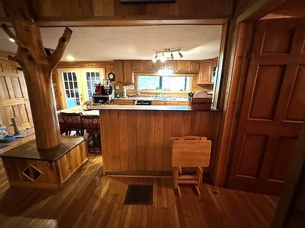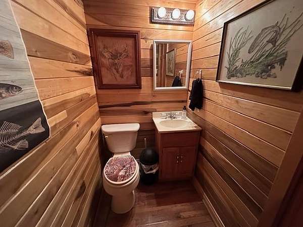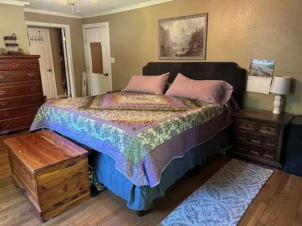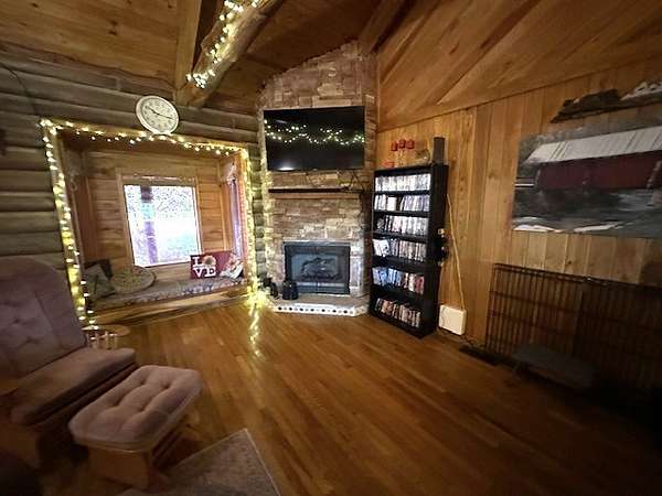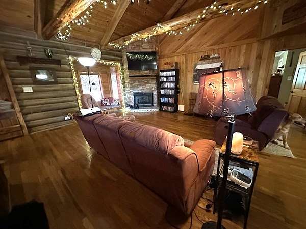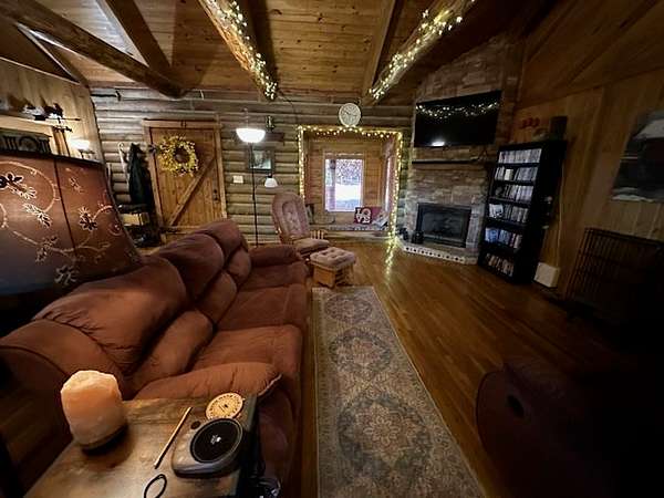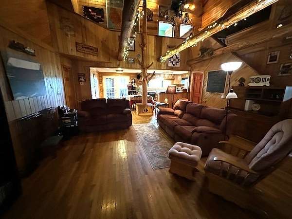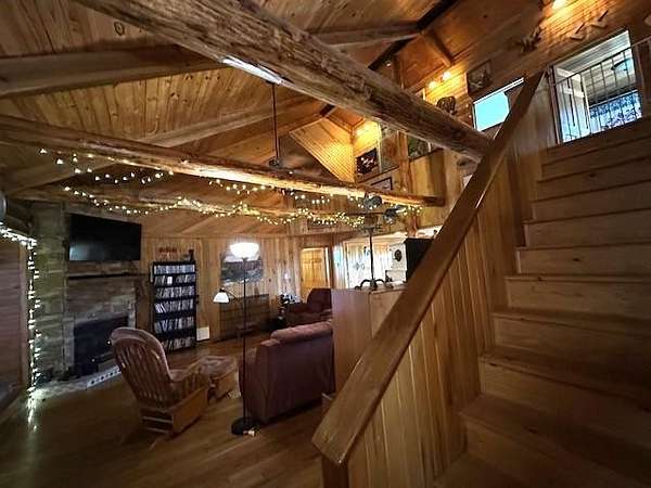 Unique log home outside city limits which features 4 bedrooms, 3.5 baths. Home has wood interiors doors, Pella windows, hardwood floors in great room, kitchen and master bedroom. Propane stone fireplace in great room. Bay window, cathedral ceilings with wood beams that add to the beauty of the room. Great room with Elm & Sycamore walls, Soft Maple in Kitchen, Poplar in 4th bedroom upstairs. Eat in kitchen with oak cabinets. Tub in master-bath; bathroom has solid wood interior walls. Master bedroom and guess room downstairs have private baths. The staircase has Walnut Handrails and takes you to the upstairs bedrooms, and entertainment room. Third full bath on second floor. The utility room is on main level & can be accessed from master bathroom and has access to screened in back porch. There is another open back porch for your grill & great view of back yard & pond. Public boat ramp and Tennessee River approximately 1 mile. Sellers require 24 hours' notice to show.