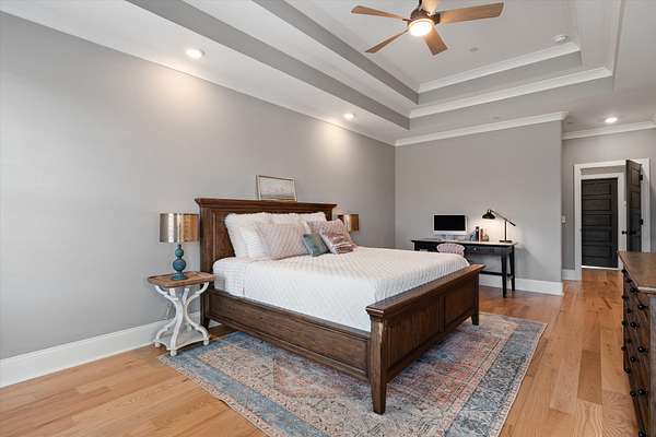The thoughtfully designed home offers 5 spacious bedrooms and 5.5 bathrooms. Expansive living areas create an ideal space for both everyday living and entertaining, while a private office allows for quiet productivity. Two large bonus rooms provide incredible flexibility for a media room, craft room, or game room. Equipped with a 4 car garage. One garage is heated/cooled and overlooks the back yard view through a full view glass garage door. Other features include Iron Lion Entry Doors , water filtration and softener system, tankless water heater, wired for security system & home speakers, private friends entry door, tiled utility/pet room, marble & soapstone countertops, extra large refrigerator, kitchen aid appliances & custom wood cabinets, & a modern AcrusStone gas fireplace. An oversized laundry room with tons of cabinets and its own farmhouse sink. The Buttler’s pantry includes a nugget ice maker, floating concrete sink, and ample amounts of storage. This home is a legacy home that your family will enjoy for years to come.