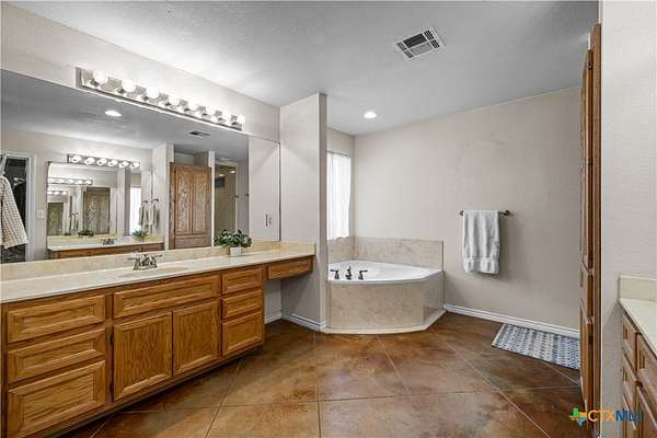 - Ceiling Fans, Double Vanity, Garden Tub Roman Tub, Kitchen Dining Combo, Separate Shower, Solid Surface Counters, Split Bedrooms, Tub Shower, Walk In Closets