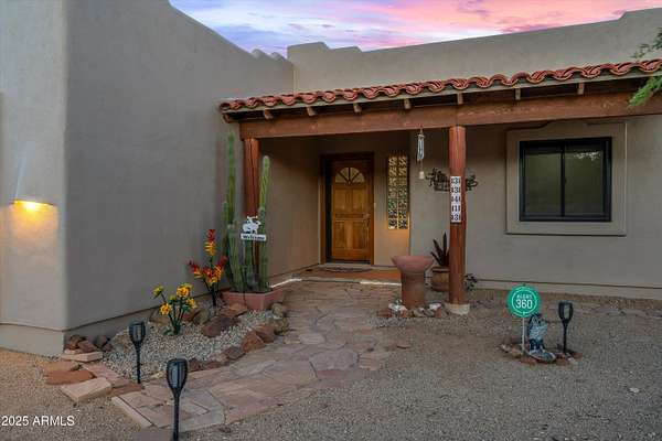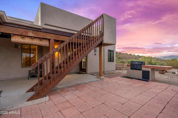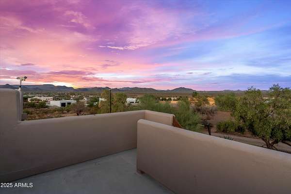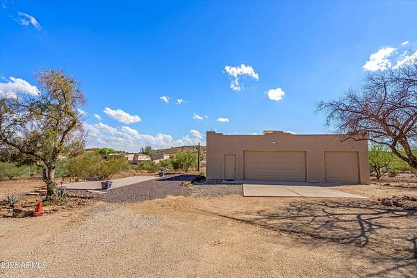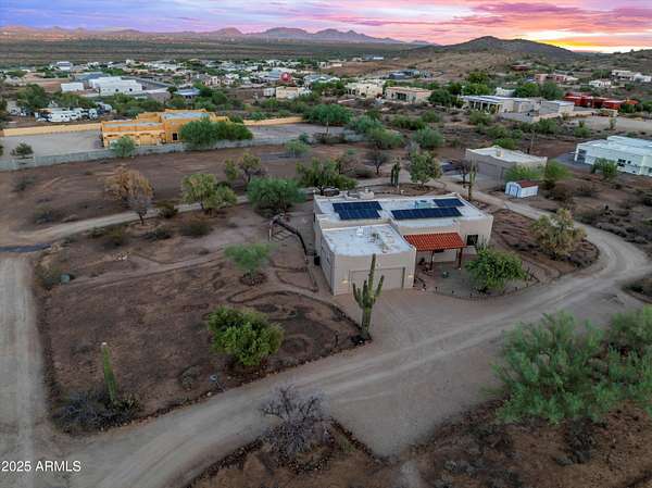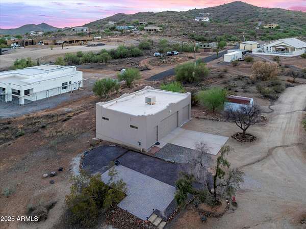 This 2.5 acre horse property with breathtaking city & mountain views, is truly special. The property offers privacy, flexibility, and endless potential. The 3-bedroom, 2-bath cozy home is designed to enjoy Arizona living at its best, featuring a rooftop deck-the perfect spot to watch stunning sunrises and unforgettable sunsets The property includes a separate outbuilding with a 3-car garage and half bath, ideal for hobbies, storage, or a workshop. Recent upgrades include updated plumbing and a durable 50-year roof for long-term peace of mind. With no HOA, you'll enjoy freedom & space rarely found. An RV pad with electric & sewer hookups adds convenience for guests or travel enthusiasts. The expansive lot offers the ability to split & add an additional home. This is an amazing property.