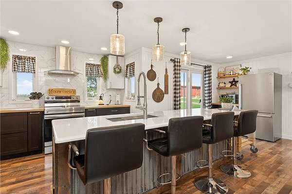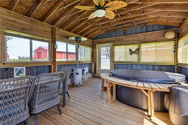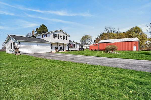 Don't miss this opportunity to own a beautiful small horse/livestock farm with income potential! This well-maintained and updated split-level home offers 4.9 acres and approximately 2,300 sq ft of living space, featuring 3 bedrooms and 1 full bath in the main house and an additional 1 bedroom and 1 bath of living space in attached in law suite. The heart of the home is a completely renovated kitchen, taken down to the studs with all new plumbing and complete electric rewire, rebuilt with quality finishes. Large 9-foot center island with seating,Quartz countertops,Brand-new appliances,easy access to a newly built 18x20 deck (2025), great for entertaining. new windows and doors, throughout. Fully updated three-season room with new windows and corrugated metal accents, Generous Living room and dining room, lifetime guarantee dry basement with battery backup sump pump. Permitted in-law apartment (potential primary suite or income-producing rental) featuring:1 bedroom / 1 bathroom (standalone shower), Full kitchen, beautiful knotty pine finishes with vaulted ceilings, private access, Ideal for extended family, guests, or rental income opportunity. Exterior & Property Features: 4.9 acres of land, ideal for horses or livestock ,42x60 Morton barn with,16x30 side addition 30x40 livestock barn with 4 stalls and potential for more. Both barns include water and electric, electric fencing installed for pasture use, Horse barn has private stone driveway, Fully fenced dog run, Excellent potential for horse boarding or barn rental income Recent Updates & Mechanical Features: New furnace (2026) Central air (2022) Pellet stove (2024)Roof (2019) Generac whole-house generator, Kitchen appliances 2025 All included. This property offers the perfect blend of country living, functionality, and multiple income-generating opportunities-Minutes from Hamlin Beach and the NY State Parkway. Ideal for hobby farmers, equestrian enthusiasts, or investors alike. Delayed showings 5/1, 5/2 5/3 and Open house on 5/2 from 1-3pm, Delayed negotiations, offers due on 5/4/2026 @ 7pm.