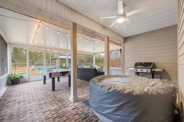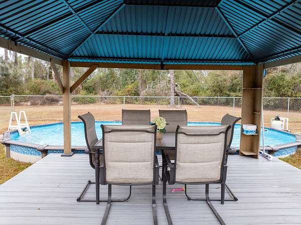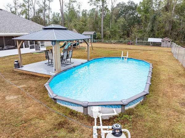 Welcome to this stunning 4-bedroom, 3-bathroom home nestled in the heart of Madison, Florida, offering the perfect blend of comfort, space, and outdoor living. Set on a beautifully maintained, 2.44 acre private lot with a long drive, this property delivers peace and privacy just minutes from town. Step inside to find bright, open living spaces with vaulted ceilings, rich wood floors, and an inviting living room centered around a cozy fireplace. The spacious kitchen is a true highlight, featuring granite countertops, stainless steel appliances, ample cabinetry, and a functional layout that flows seamlessly into the dining and living areas--perfect for entertaining or family living. The split-bedroom floor plan offers privacy for the spacious primary suite, complete with a well-appointed en-suite bathroom. The additional bedrooms and bathrooms provide plenty of room for family, guests, or a home office. Outdoor living is exceptional with a covered and screened back porch, perfect for relaxing year-round, plus an additional covered pool pavilion overlooking the above-ground pool--ideal for gatherings, grilling, and summer fun. The fully fenced backyard offers plenty of space for pets, play, and outdoor enjoyment. This home is packed with valuable upgrades, including: o Brand New Roof (2025)o Granite Countertopso Stainless Steel Applianceso Upgraded Whole-Home Water Filtration Systemo Full Irrigation System for easy lawn maintenanceo Generator Ready Additional features include 2 car garage, beautifully maintained landscaping, ample parking, mature shade trees, and a peaceful setting with the convenience of town nearby. This exceptional property is perfect for families, entertainers, or anyone seeking space, privacy, and modern upgrades in one of Madison's most desirable locations.