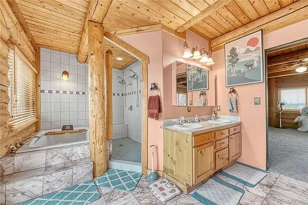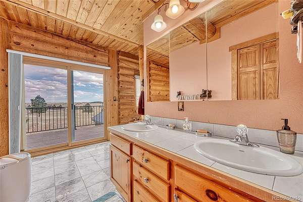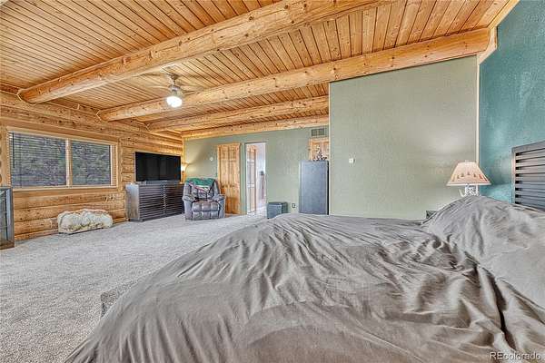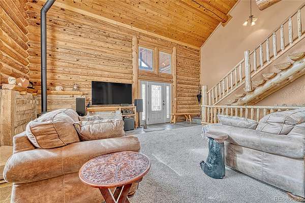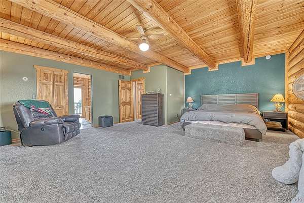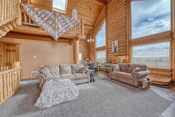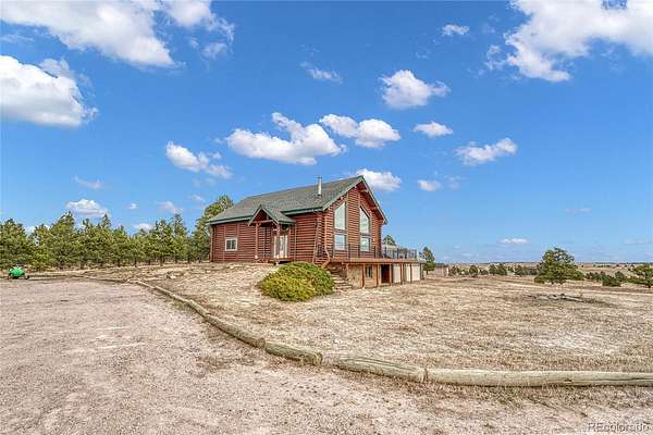 One of a kind custom built log home on a serene 10 acres. 5 bedrooms, 4 bathroom 3900+ sq ft floorplan offers breathtaking 360 degrees views of amazing scenic beauty. Pikes Peak views to the south and snow covered mountains to the west.