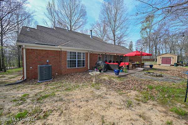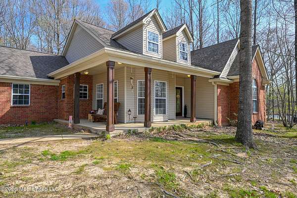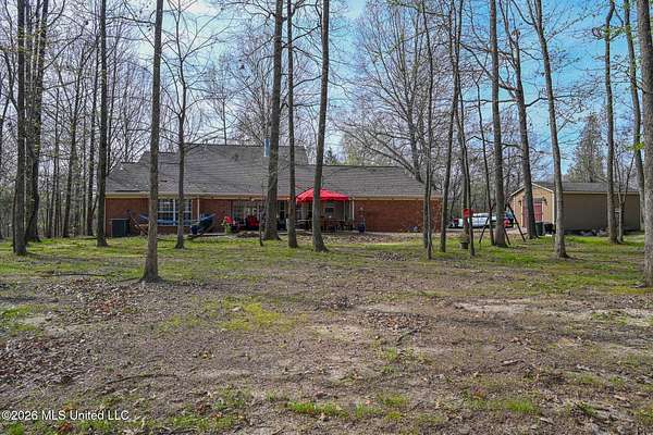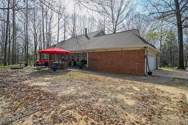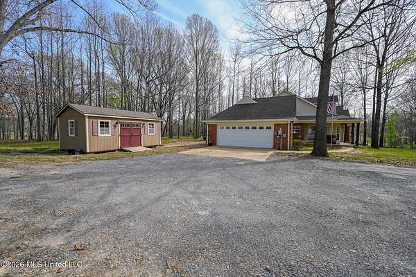 Welcome to 3346 Kyle Ln--your own private retreat in the highly sought-after Hernando school district! Nestled on 1.59 acres in a quiet cove, this 3-bedroom, 2-bath home offers 2,200 square feet of comfortable living surrounded by mature trees, peaceful views, and even your own small pond. Inside, you'll find original hardwood floors, high ceilings, and a spacious, open layout enhanced by fresh updates, including newly painted trim and recently smoothed ceilings. The home features a formal dining room, a large kitchen with a breakfast area perfect for gathering, and a cozy living space filled with natural light. A double-sided fireplace adds warmth and charm, creating an inviting atmosphere throughout. The primary suite offers a true retreat with a large corner jacuzzi soaking tub--perfect for unwinding at the end of the day. Step outside to enjoy the oversized stamped concrete patio, ideal for relaxing or entertaining while taking in the privacy and shade of the wooded lot. Major updates provide peace of mind, including a 9-year-old roof, a brand new 5-ton HVAC system with new return ducts, and a recently inspected septic system with a new aerator pump. The freshly spread gravel driveway leads to a 2-car garage, adding both convenience and curb appeal. Located just 1 mile from I-269 and only 10 minutes to Southaven, this home offers the perfect blend of quiet, country-style living with easy access to everything you need.
