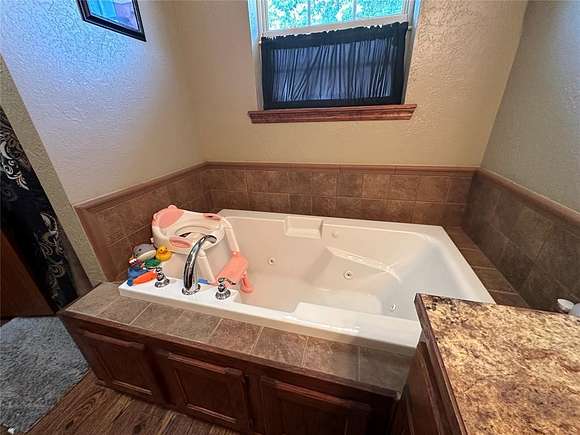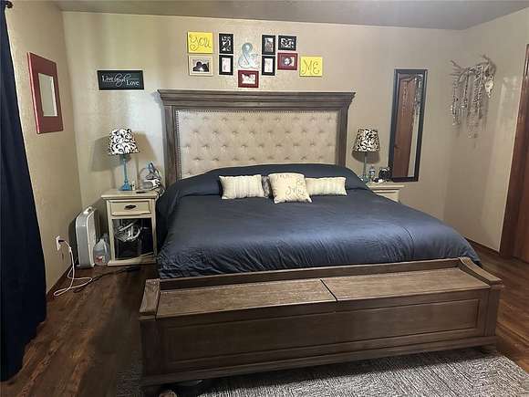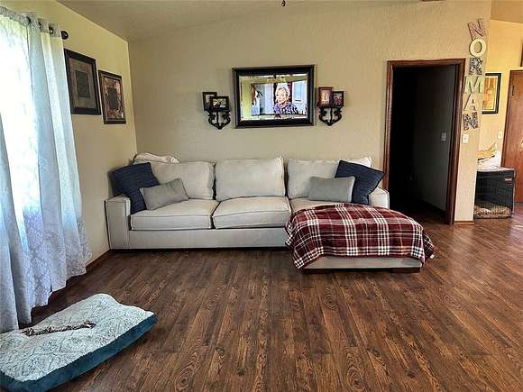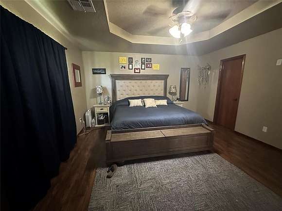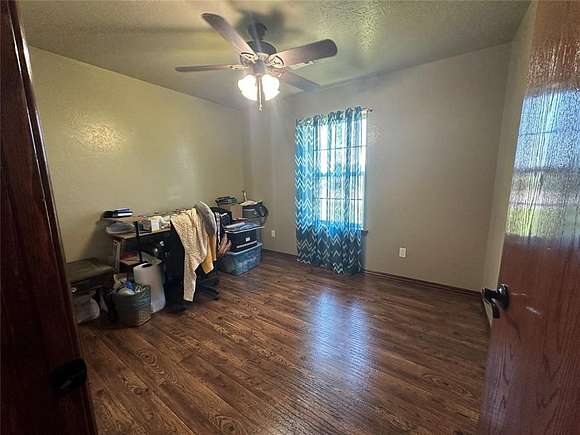 A slice of country living awaits with a spacious layout featuring four bedrooms, two bathrooms, and an office, all situated on 3.5 acres surrounded by 400+ acres, offering a tranquil country ambiance. The open floor plan provides ample space for hosting family gatherings, complemented by a generously sized master bedroom boasting a jacuzzi tub, separate shower, and a convenient laundry drop. The laundry room features dual access points, with an outdoor entrance and a connection to the kitchen. Three guest bedrooms, equivalent in size to the office, are located at the opposite end of the house. Enjoy the serene outdoors from the inviting back porch equipped with a built-in fire pit. Additional amenities include a two-car carport, a 20 x 25 metal building suitable for a workshop or a man cave, complete with concrete floors and electricity, as well as a 28 x 32 hay barn. At the rear of the property lies a stocked pond, offering a peaceful retreat. The property also features ample space for gardening or setting up a hunting stand, with a water well available but currently unconnected to electricity.