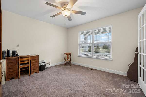 Privately set on 10.86 acres, this beautifully maintained six-year-old ranch offers the perfect blend of comfort, space, and natural surroundings. The thoughtfully designed floor plan features three bedrooms, two-and-a-half baths, plus a dedicated office, ideal for working from home or flexible living needs. The spacious kitchen is the heart of the home, showcasing birch cabinetry, stainless steel appliances, and generous counter space, seamlessly flowing into the main living areas. With over 2,300 square feet, the home provides an open yet functional layout, complemented by a bonus room ready to be finished for additional living or recreational space. Enjoy peaceful mornings and evenings from the covered front porch or the covered rear deck, where wildlife frequently visits and the serene setting truly shines. The property is served by public water and a septic system, and includes a large garage with ample room for vehicles, storage, and equipment. Outdoors, the land is equally impressive with a 20' X 30' building equipped with power and water, perfect for a workshop or hobby space, and a picturesque creek along the rear property line, adding to the property's charm and privacy. A rare opportunity to own a move-in-ready home with acreage, modern features, and a tranquil setting.