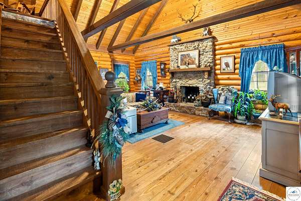 Your dream of a 'cabin in the woods' is just at your fingertips. Run, don't walk, to get a chance to own this property. This quaint, log cabin home sits on 15 wooded acres. The landscape of this home was carefully carved out of the gently rolling timber of Pettis County. It includes a horse paddock, a small building for storing feed, chickens, or working on projects. It has a covered front porch perfect for greeting the day with a cup of coffee. A large back deck to enjoy the afternoons in tranquility and peace. When you walk into the home you are captured by the stone fireplace which is the centerpiece of any log home. The kitchen, a small bedroom and bathroom occupy the main floor and a bedroom in the loft. The unfinished basement is where you will find the laundry facilities and the mechanics of the home. The home is currently being heated with a wood stove but plans to install a propane furnace are in the very near future. The property sits in the lower southeast corner of Pettis County just a stones' throw to Morgan and Benton County. Be sure to watch the 3D tour of this home.