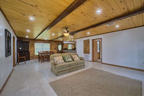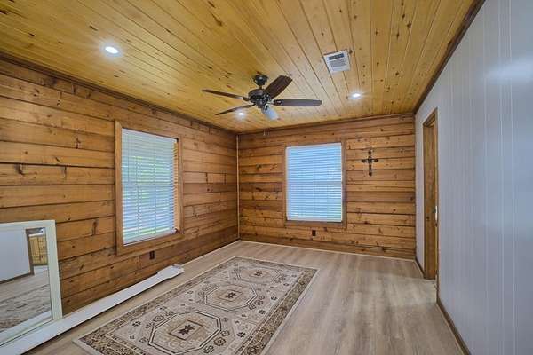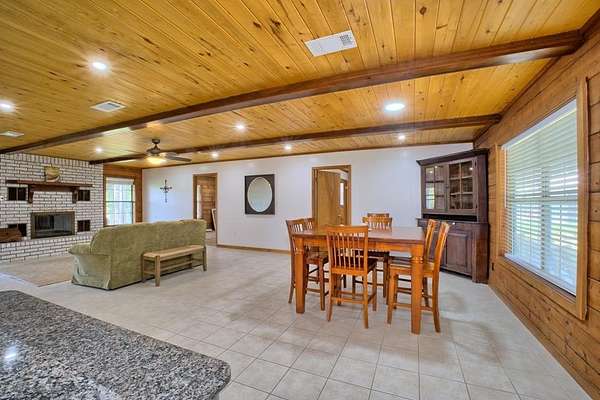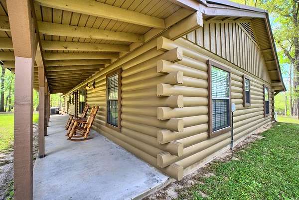 Waterfront living at its best on Toledo Bend Reservoir in the sought-after Fairmount area! This beautifully renovated 2,300 SF Satterwhite log home sits on 2 shady acres with 291 feet of waterfront, offering stunning views, outstanding fishing, and abundant wildlife. The 3BR/2BA home features an open-concept kitchen with granite countertops, dining area, coffee bar, pantry, and included appliances. Bedrooms feature luxury vinyl plank flooring, while the main living areas have durable ceramic tile. The spacious primary suite includes a private bath and walk-in closet, with two additional bedrooms offering walk-ins and a Jack-and-Jill bath with double vanity. Enjoy the scenery from the 300 SF back porch or launch directly from your private boat ramp and dock with year-round access. The property also includes a 2-car garage with workspace, 1,500 SF shop, & 11KW backup generator. Located in a quiet, low-density subdivision with additional community ramp-a true East Texas lakefront retreat!