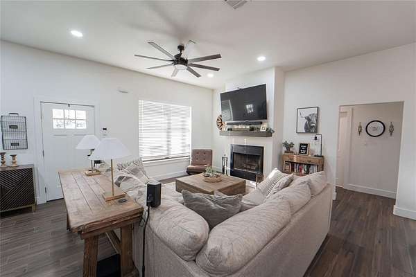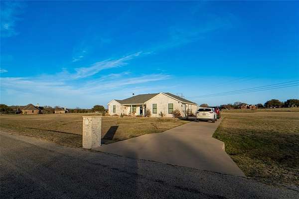 Nestled in the coveted Brazos West subdivision, this stunning 3-bed, 2-bath custom build offers a rare combination of privacy and views without HOA restrictions or city taxes. Situated on 1.65 acres in scenic Palo Pinto County, the property boasts wide Texas skies in a peaceful setting that feels worlds away while still being conveniently located to the growing town of Mineral Wells. Inside, you'll find soaring ceilings and an open-concept layout, creating an airy, light-filled atmosphere perfect for everyday living and entertaining. The heart of the home features quartz countertops, stainless-steel appliances, and custom finishes ideal for hosting and gathering. Two generous living areas afford flexibility for movie nights in front of the wood-burning fireplace and a play space or sitting area, while the bonus room provides an ideal home office, hobby room, or nursery. The primary suite offers a quiet, private retreat with a thoughtful floor plan that ensures comfort and function for family living. Smart-home and security features throughout allow modern-day convenience for the new owners. Step outside and enjoy sweeping views and fresh landscaping with room to roam, garden or host, and the tranquility of living on acreage in a true cul-de-sac neighborhood, near the iconic Brazos River. Ideally located near state parks and recreational lakes, this is country living at its finest with space, quality finishes, and freedom, without sacrificing amenities. Call today to see this gem for yourself!