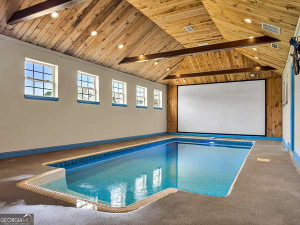 Nestled in the heart of Mallards Landingin Locust Grove, an exclusive fly-in, swim, and tennis community, this breathtaking 5-bedroom, 3.5-bathroom estate redefines luxury living with unparalleled amenities and timeless elegance. Spanning a meticulously designed floor plan, this home is a haven for those who crave both adventure and serenity. The level, manicured lot ensures effortless maintenance, allowing you to focus on enjoying the lifestyle this unique community offers. Step inside to discover a grand chef's kitchen that is nothing short of a culinary masterpiece. Anchored by a sprawling center island, this gourmet space boasts stainless steel appliances, gleaming granite countertops, and plenty of storage, perfect for crafting meals for intimate dinners or lavish gatherings. The open-concept design flows seamlessly into the airy living areas, where natural light pours through oversized windows. The home's hidden treasure is its extraordinary indoor pool, a private oasis where relaxation meets entertainment. Imagine hosting unforgettable weekend retreats, with a massive movie screen mounted above the shimmering waters, transforming the space into your personal cinema under the stars-without ever leaving home. Whether it's a lively pool party or a quiet evening swim, this feature elevates every moment. For aviation enthusiasts, the property includes a spacious hangar-style garage, thoughtfully designed to accommodate your private plane, ensuring seamless arrivals and departures in this elite fly-in community. A separate, equally impressive garage provides ample space for your vehicles, keeping them secure and easily accessible. Outside, the back patio beckons for al fresco gatherings, offering a perfect setting for barbecues, cocktail parties, or simply soaking in the tranquil surroundings. The level lot enhances the outdoor experience, providing a versatile canvas for gardening, play, or future enhancements. As part of a vibrant swim and tennis community, residents enjoy access to pristine recreational facilities, fostering an active and social lifestyle. Whether you're perfecting your backhand, lounging by the community pool, or taking flight from the private airstrip, this extraordinary estate offers a rare blend of luxury, convenience, and adventure. Welcome home to a life without limits. Give me a call for a personal tour!