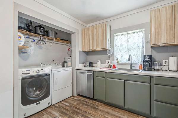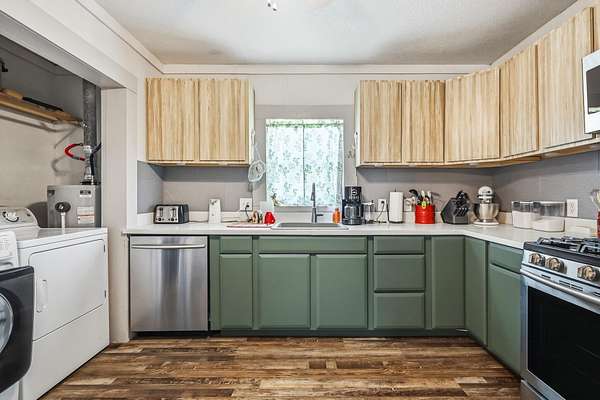 - Dishwasher, Dryer, Free-Standing Gas Oven, Gas Water Heater, Microwave, Refrigerator, Washer