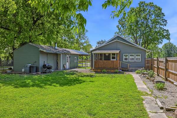 Welcome to 335 East Cofield Street--an exceptional property offering comfort, style, and space both inside and out. With just under 1,100 square feet of thoughtfully designed living space, this home features a highly functional floor plan that includes 3 bedrooms (one non-conforming), 2 full bathrooms, a formal dining room, a spacious living area, and a dedicated office.The beautifully remodeled kitchen is a standout feature, showcasing custom cabinetry, solid surface countertops, and an upgraded stainless steel appliance package, including a gas stove. For added convenience, the washer and dryer are also included in the sale. Throughout the home, you'll find fresh paint and newer luxury vinyl flooring, reflecting quality craftsmanship and attention to detail from the moment you walk in.Major updates completed within the past two years include a new roof with gutters and leaf guards, an updated HVAC system, new windows, and modernized electrical--offering peace of mind for years to come.Step outside to enjoy excellent curb appeal, attractive landscaping, and a state-of-the-art solar panel system. The covered deck provides the perfect space for entertaining or relaxing while taking in a quiet Ozarks evening.Additional exterior features include a 12 x 36 detached garage with a newer carport, a fenced yard with cross fencing, and an 18 x 18 shop with lean-tos--ideal for hobbies, storage, or workspace needs. All of this sits on an expansive 1.71 acres spanning four lots, offering a rare blend of country-style living with the convenience of being in town.Schedule your private showing today and experience everything this unique property has to offer!
