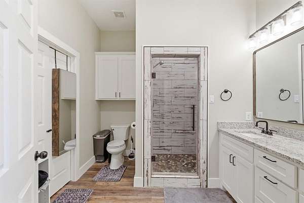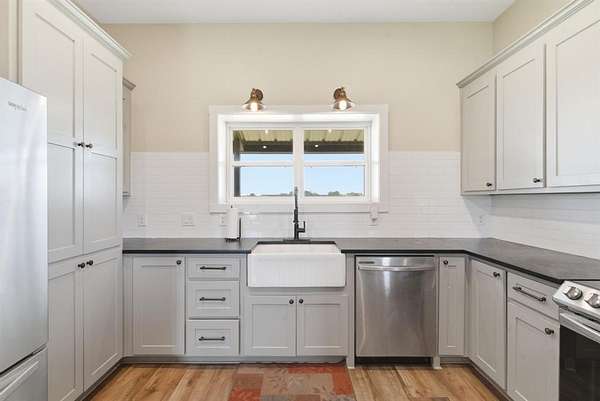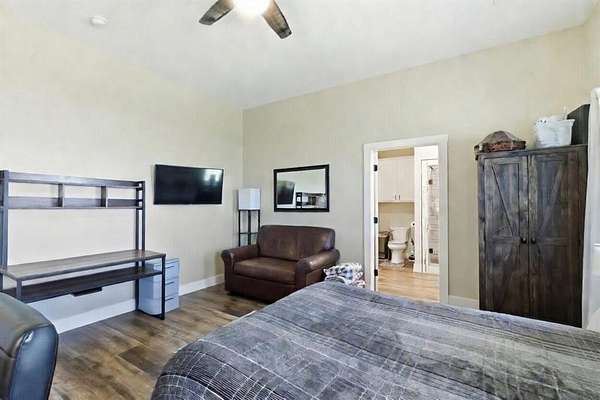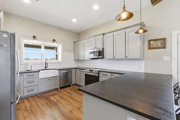 The kitchen is a standout feature, complete with gorgeous countertops, custom cabinetry, and stainless steel appliances—perfect for both everyday living and entertaining. The primary suite offers a peaceful retreat with tall ceilings, ample natural light, and a beautifully appointed ensuite bath featuring granite countertops, a separate shower, and a walk-in closet. The secondary bathroom features granite countertops, providing a cohesive, upscale feel throughout the home. Outside, the property is well-equipped for horses with a combination of top rail pipe and cable fencing, two separate paddocks, and loafing sheds—ready for your animals from day one. With plenty of room to expand or customize, this property offers both functionality and opportunity. Whether you're looking for a nice horse property or a peaceful place close to town, this one checks all the boxes.