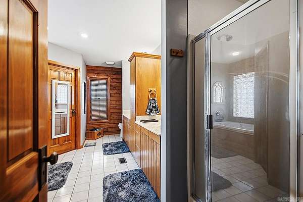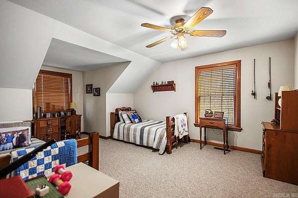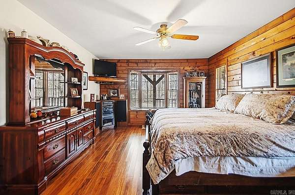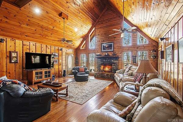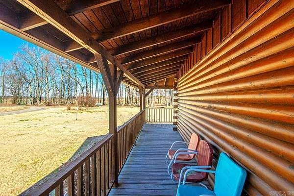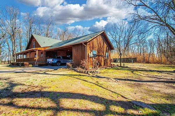 Welcome to this quiet Lakefront log home. It's a peaceful 4-bedroom, 3-bath lakefront home offering beautiful water views on 2 private acres. This spacious property features a bright living room with soaring vaulted ceilings and abundant natural light, along with a working wood-burning fireplace currently equipped with gas logs. The upstairs landing provides flexible space perfect for a home office or game area, while the screened-in back porch offers a quiet place to relax and enjoy the view. Major updates include a new roof (2022), HVAC system (2022), 200-amp electrical panel, and a water heater replaced in 2017. Outside, you'll find two attached storage areas off the carport, including one set up as a bait shop/fishing storage area for tackle and gear and the other used as everyday storage. A boat slip located on the same road provides convenient lake access, and the home is just minutes from England Country Club, combining serene waterfront living with everyday convenience.