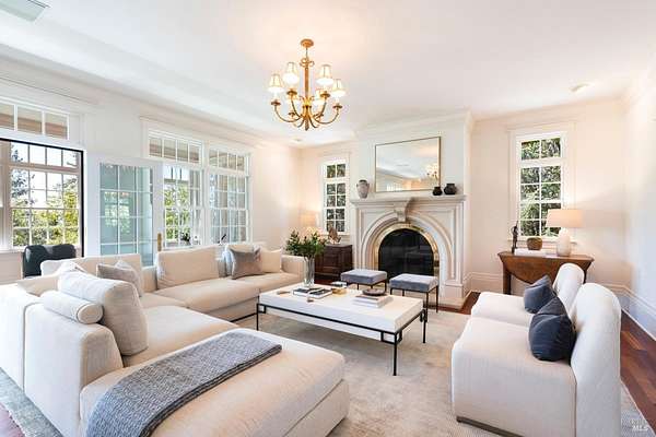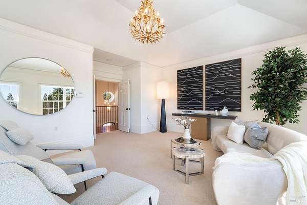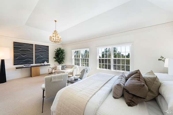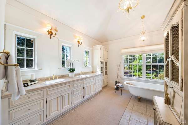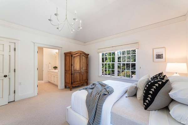 This custom well-built, French-inspired home overlooks Cade Vineyards and has ideal soils for planting a few acres of vineyard in the Howell Mountain AVA. Just 10 minutes from St. Helena and fully furnished, a buyer can move right in! The sprawling estate on 5 acres surrounded by renowned wineries and surrounded by lush greenery, features an elegant private drive, swimming pool, manicured gardens, and expansive patios. The 3-story home boasts a grand 2-story entry with a foyer that opens to a dramatic staircase to bedrooms, an elevator and leads into the Living Room and enclosed sun porch. The 3 car garage opens to the incredible wine cellar , media room, gym and access to the beautiful pool and gardens. The impeccable detail of the interiors features high ceilings and natural light. The Chef's Kitchen has timeless finishes and custom cabinetry and outfitted with high-end appliances, walk-in pantry, and a Breakfast Room. Upstairs the coffered ceiling Primary Suite has two generous walk-in closets and an expansive ensuite Bath. Three more guest Bedrooms, 2 Baths and Office adorn this floor. The detached Guest House has one Bedroom, 1.5 Baths, Living Room, Kitchen, and its own private Veranda.