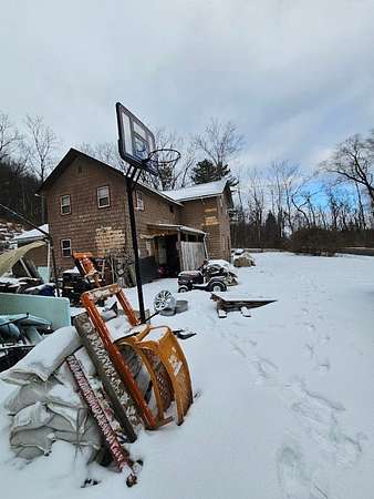 Est $232/mo2 story home, 2 car garage 1.6 acres. Bring your dreams, tool belt and determination for this rare "as-is" opportunity. Total sweat equity! Upstairs bath gutted ready to go. All materials in yard stay such as windows and wood for house etc. Everything in garage is sellers. Basement crawl 4' stone recently added. Owner stated roof good, no leaks. Propane wall heater, fuel oil boiler not being used. Appliances stay as- is. Wash/Dry not included. Cash close immediately. Selling agent related to seller.