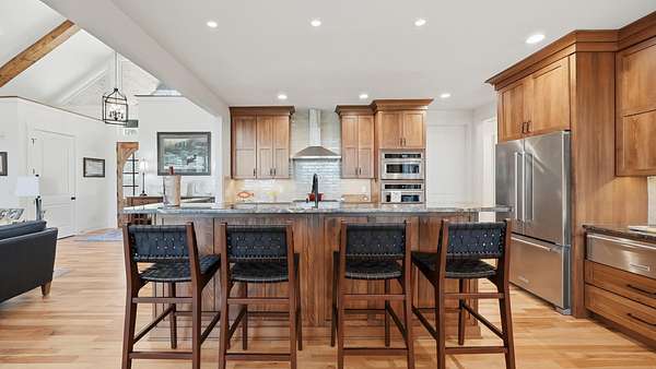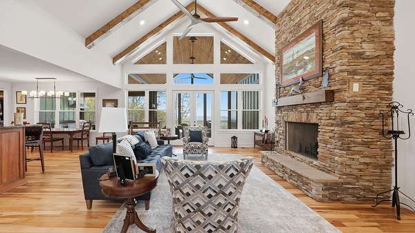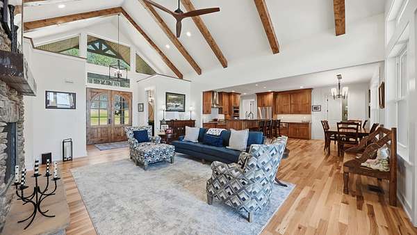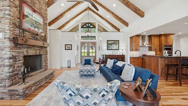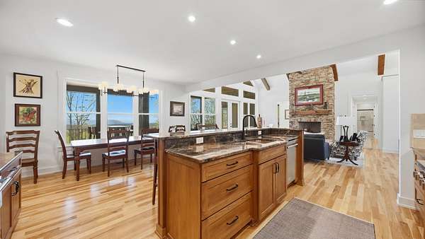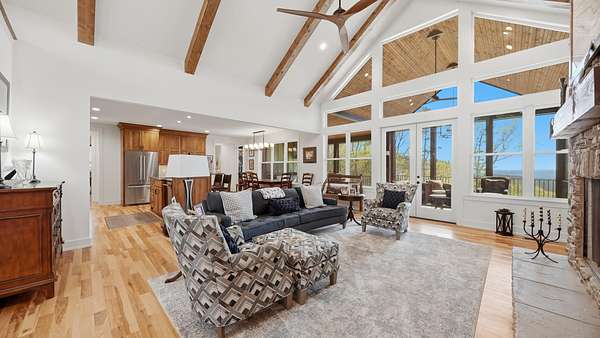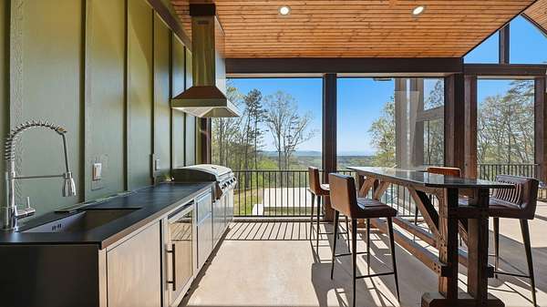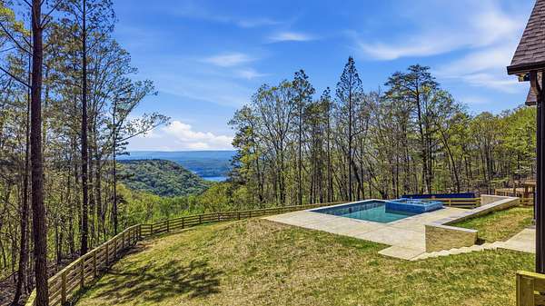 Perched above the breathtaking backdrop of Nickajack Lake and the Tennessee River, this custom-built home in River Gorge Ranch offers a rare blend of refined craftsmanship and natural beauty. Thoughtfully designed and built entirely on one level, the home spans over 3,000 square feet of intentional living space, where every detail has been curated for both comfort and elevated everyday living. Step inside to find soaring ceilings with exposed beams, expansive windows that frame the surrounding landscape, and a seamless flow between the main living areas. The kitchen opens effortlessly into the living and dining spaces, creating the perfect environment for gathering, while a stunning stone fireplace anchors the home with warmth and character. A dedicated bar area adds an extra touch of sophistication--ideal for entertaining. Outdoors, the experience continues. A private pool and fully fenced yard create a true retreat, perfectly positioned to take in the sweeping valley views. The covered outdoor living space extends your living area year-round, offering a peaceful place to unwind or host against one of the most scenic backdrops in the region. Located within the growing River Gorge Ranch community, residents also enjoy access to the all-new Riverdance restaurant, bringing a unique lifestyle element right to your doorstep. This is more than a home--it's a place to experience East Tennessee at its finest, where modern luxury meets the quiet beauty of the mountains and water below.