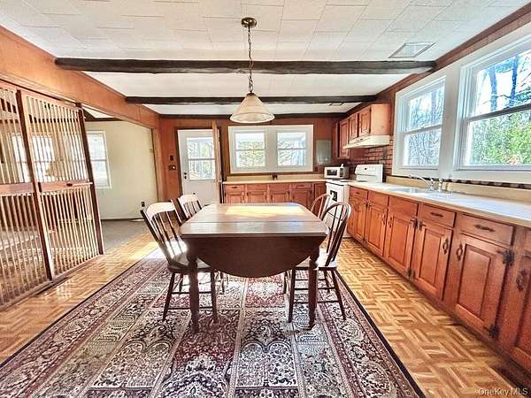 - Beamed Ceilings, First Floor Bedroom, First Floor Full Bath, Open Floorplan