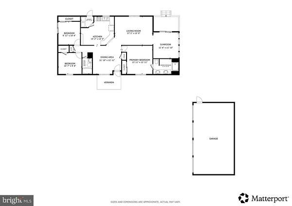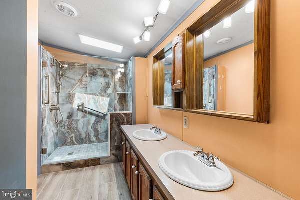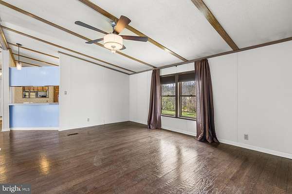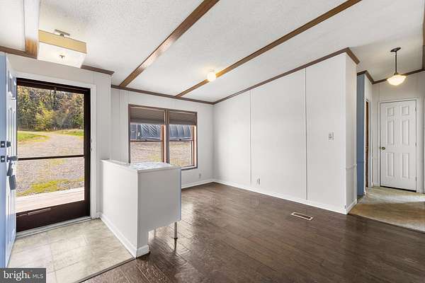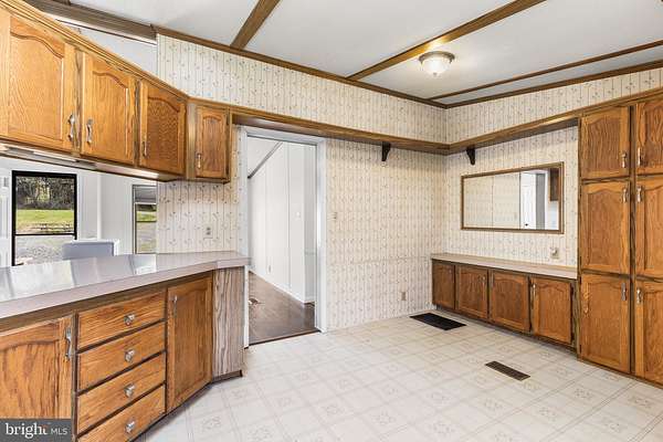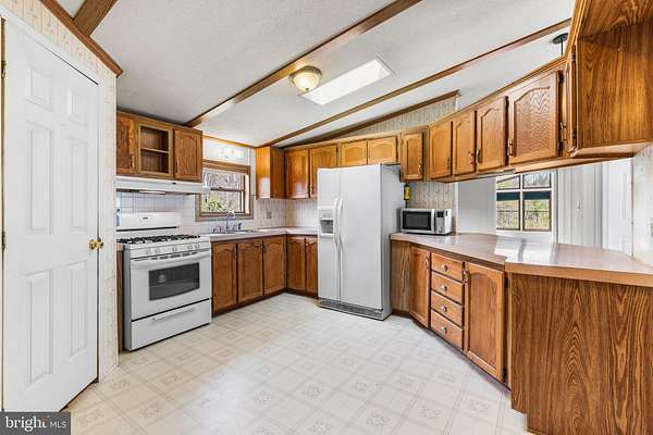 Set on 3.2 partially wooded acres in a peaceful, private setting, this inviting ranch home offers the perfect blend of comfort, space, and natural beauty. A scenic 1,000-square-foot pond and multiple outbuildings enhance the property's versatility and charm. Enter inside to an open-concept floor plan featuring vinyl flooring throughout most of the home. A welcoming foyer flows seamlessly into the dining area and kitchen, which boasts ample counter space and abundant cabinetry-ideal for everyday living and entertaining. Tucked away for convenience is a dedicated laundry room. The spacious living room is filled with natural light, highlighted by high ceilings and a large window that frames the surrounding landscape. Just beyond, the sunroom impresses with vaulted ceilings, a wall of windows, and sliding doors that lead to a rear covered porch-perfect for relaxing and enjoying the tranquil setting. The primary bedroom offers a privacy, complete with an ensuite bathroom featuring a dual vanity and a glass-enclosed, tiled walk-in shower. On the opposite side of the home, two additional bedrooms share a full hall bath; one bedroom includes sliding doors that open to the side yard. Outside, the property continues to shine with an oversized four-car detached garage with high ceilings, a pole barn with electric, and the picturesque pond. While tucked away on a quiet road, this home remains conveniently close to major highways and a community park, offering both privacy and accessibility.
