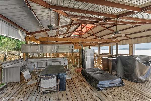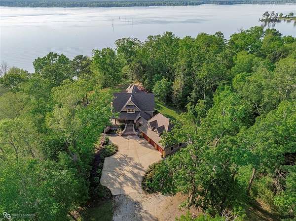 Welcome to 335 White Perch -- a custom-built home on nearly 7 private acres along the stunning Toledo Bend Lake! Designed with a warm, rustic cabin feel, this home features open windows in the kitchen and living room, offering breathtaking views of the lake. The kitchen is a true standout, featuring beautiful sinker cypress cabinets that add charm and timeless appeal. Inside you'll find 6 bedrooms, 4.5 bathrooms, including two secluded rooms upstairs--one being the master suite with serene lake views--while the remaining bedrooms are conveniently located downstairs with a full bathroom. A private on-suite above the garage adds the perfect mini retreat. Enjoy an additional 2,400 sq ft of heated and cooled space between the garage and on-suite, offering flexibility, comfort, and room to spread out. Need to do a little office work while you're away? No worries--an office space is ready for you! The home includes ample storage throughout, ensuring space for everything from lake gear to cozy cabin essentials. Enjoy the heated and cooled garage, complete with a convenient bathroom--ideal for hobbies, guests, or extra comfort. Spend your days boating, jet skiing, tubing, fishing, or just unwinding at the boathouse with a full kitchen and unforgettable lake views. This peaceful lakeside escape is ready to help you make lasting memories with family and friends. Don't miss your chance to own this slice of lakeside paradise- Schedule your showing today!
