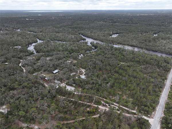 The property includes a private lagoon, multiple cleared build sites, and existing infrastructure, including 5 -RV hookups (in need of repair), a well, septic system, and power access. A rustic cabin on-site offers renovation or redevelopment flexibility.
