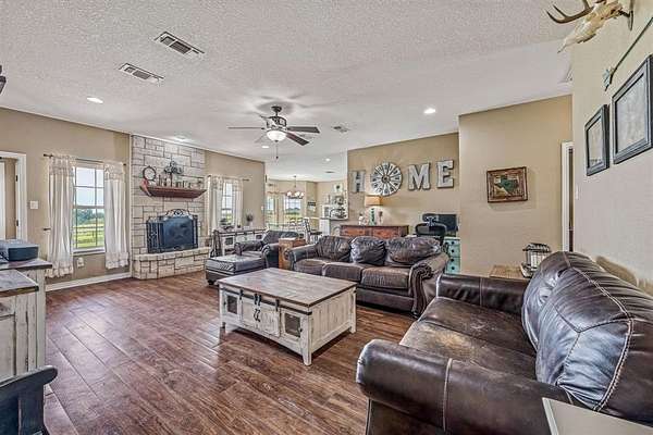 Beautiful custom-built home on 6 Ag exempt acres. This home is conveniently located just out of Lingleville, Tx. Only minutes from Stephenville. Although located in Lingleville ISD kids can attend Stephenville ISD. This home has beautiful granite countertops with extended bar. Natural light from the bay window lighting up the dining area. Beautiful vinyl plank flooring with tile in kitchen, bathrooms and utility. The office is spacious and currently used as a 4th bedroom. Carport is extremely heavy built with two parking places. Exterior offers a well-manicured yard and big coastal area to the side. Some new fencing and old fencing. An additional area is fenced off with a barn built for show pigs with removable panels that would make a good shop with electric and water. Plenty of room to build an arena or add fencing and have more room for livestock. Possibility of more acreage. This property has so many possibilities. With only a couple of neighbors and good views and privacy. DON'T MISS THIS ONE!!!