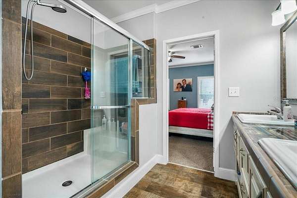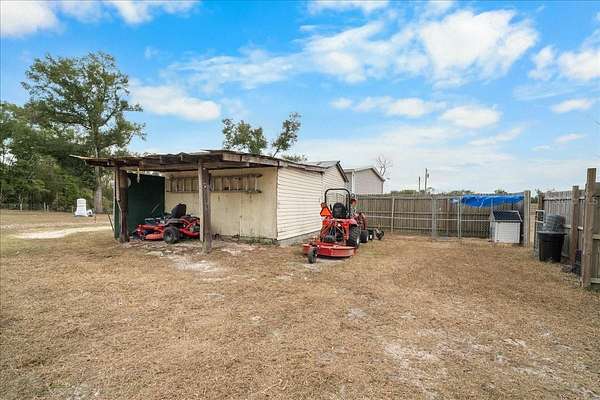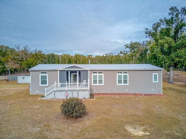 The best of rural North Florida country life is calling YOU! This expansive, standout property is 4 ACRES in unincorporated Suwannee County and has Agricultural Exemption as of January 2026. NO HOA NO deed restrictions. Current survey available. Animal lovers will appreciate the fence/cross fence, metal roofed storage shed/kennel. The star of the show is the 2018 Live Oak Homes custom built DW MH with 12x16 front deck constructed with composite decking and hidden fasteners. Inside the heart of the home, you are greeted with 9' ceilings and thoughtfully designed split open floor plan, including a great room w/ stone finish fireplace w/built in TV shelf & recessed lighting. Kitchen amenities include stainless steel appliances, stovetop w/range hood, built in oven/microwave, & massive granite topped center island. A purposeful 8x13 laundry/utility room offers built in shelves, cabinets, & sink. 2 10x14 BRs w/walk in closets & 10x12 home office/4th BR are down the hall. Both bathrooms have beautiful wood finishes & include double sinks. Main bath has large soaking tub and tiled shower. Memorable features include unique built in wood shelving in the master closet and bathroom, crown molding and tray ceilings. All parcels adjoining the property are no less than 4 acres, so privacy and peacefulness are assured. What are you waiting for? Schedule a showing today!
