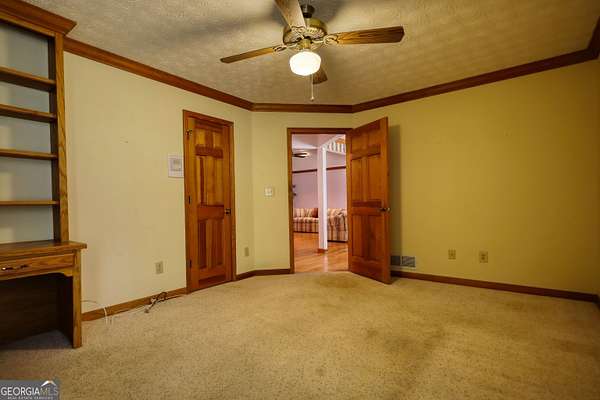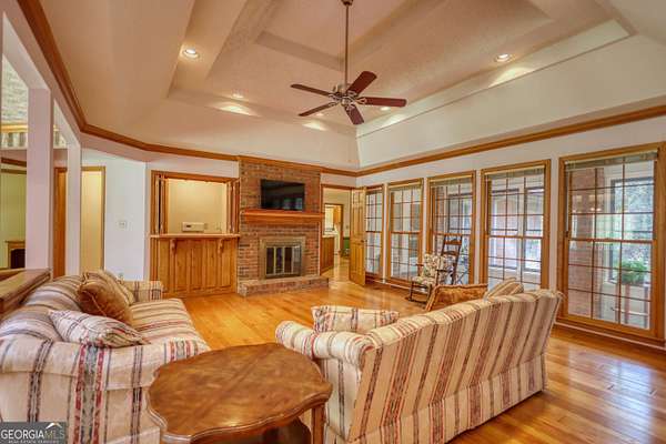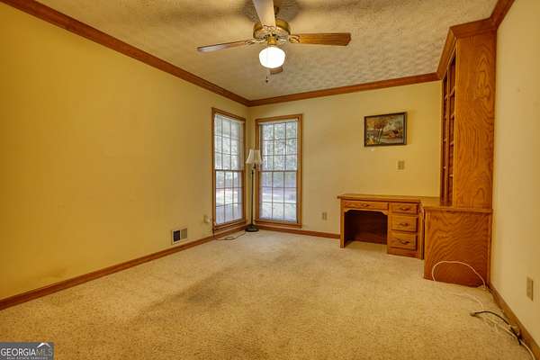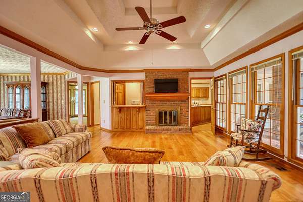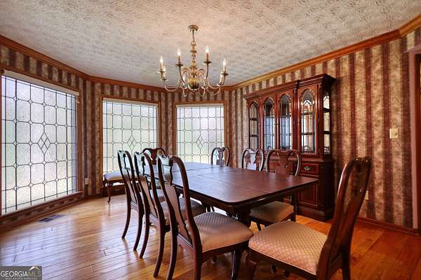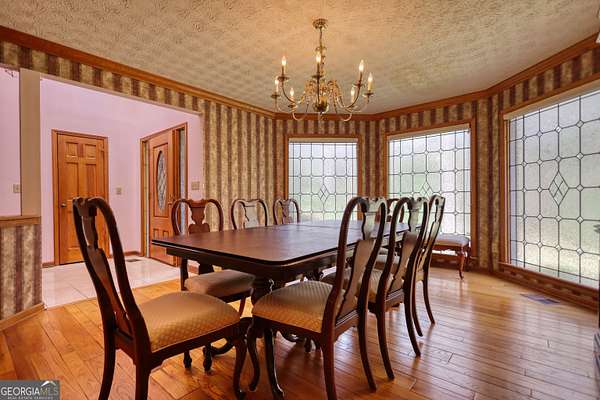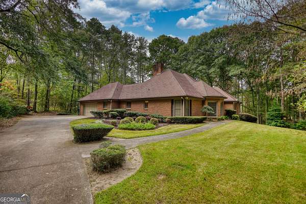 Beautifully landscaped and lighted winding driveway leads you to this all Brick ranch on a basement with 5 acres! This is a great home that has 4 bedrooms and 3 full baths. The family room has a masonry fireplace and opens to the sun porch, which is great for enjoying your plants and some warm sun! There is a formal dining room as well as an eat-in area in the kitchen, which has ample cabinetry and a pantry for extra storage. The guest bedroom and bath opens to the hallway from dining and family room. The primary suite has a tray ceiling and its own private bath with a garden tub and shower with his and her vanities. The home has a 2-car side entry garage, full unfinished basement and a gorgeous wooded 5 acre lot. Loaded with upgraded trim, custom features including a wet bar area off the family room, true cedar closet in the basement as well as a finished office, there is even a walk up attic off the hall and primary suite. There are beautiful Crepe Myrtle trees and Junipers that line the street and driveway, blueberry bushes off the basement entry and a wooded lot that brings privacy and beauty. The home has a full house intercom/music system, the dining room has full length etched glass windows that bring in natural light. The home with a little personalization and updates will be a dream home!