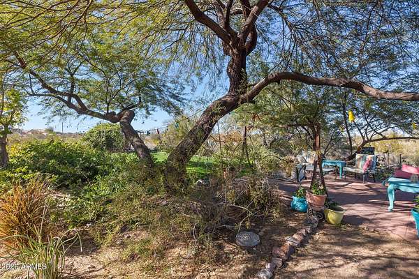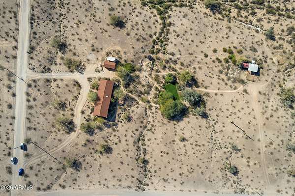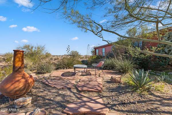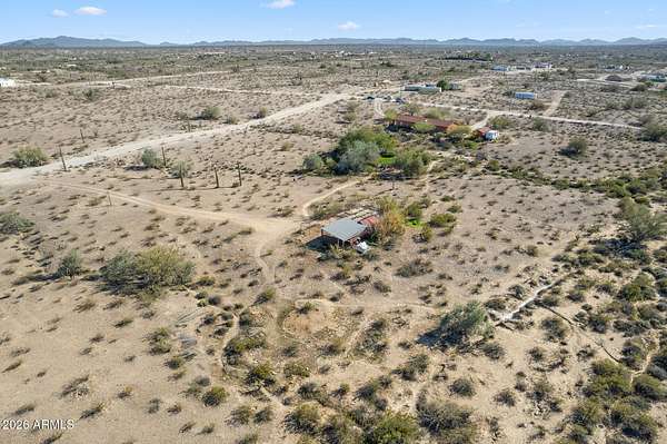 Beautiful desert homestead on 5 peaceful acres with wide-open skies, mountain views, and unforgettable sunsets. Spacious 4-bed, 3-bath home features a large primary suite, easy-care tile throughout the open living spaces. Step outside to a lush green oasis with real grass, multiple patios, covered horse stall, chicken coop, and raised bed garden. Enjoy miles of off-road trails right from your front door. This is perfect country living. Brand new 12x24 shop, new roof and skylight, and exterior paint (2025), with a newer A/C(2023), with professionally installed irrigation from your own private well, gives peace of mind and makes this homestead move-in ready for all your rural country dreams.
