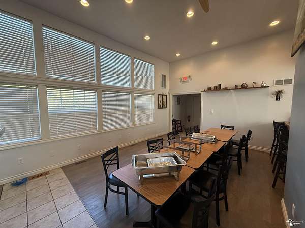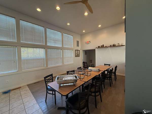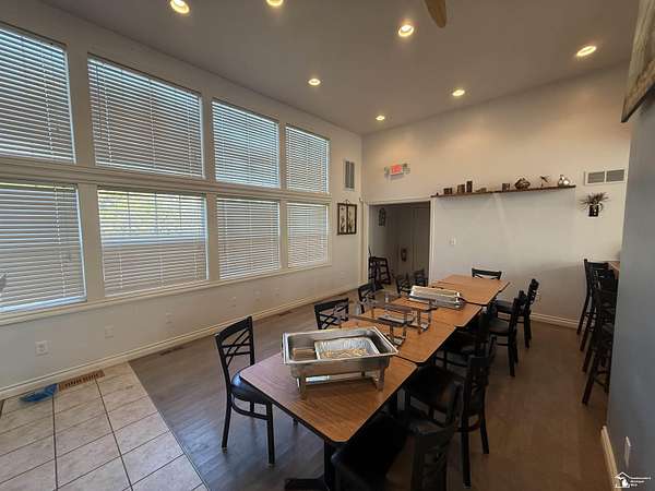 - Cafe/Kitchen, Delivery Door, Floor Drain, Furniture, Restroom(s)