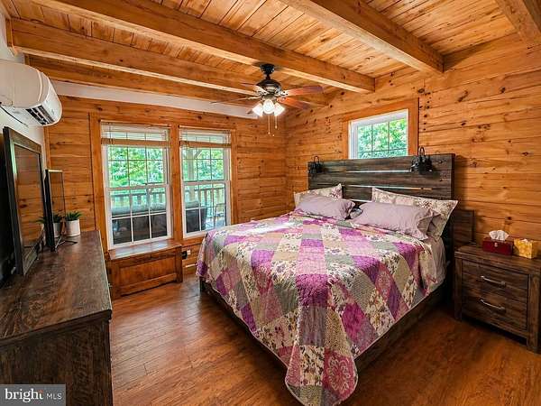 Tucked away on 5.17 acres in Watts Bay, this log cabin offers space, privacy, and a setting that's hard to find. Just over a mile from Wallops Island and NASA's flight facility. The home features 2 bedrooms, 2 full baths, and a versatile loft overlooking the main living area, with skylights and expansive windows bringing in abundant natural light throughout. Warm wood interiors are complemented by multiple heating options, including a gas wood stove, a wood stove in the finished basement, and a pellet stove in the sunroom creating comfortable living across all seasons. The bedroom and loft are equipped with brand new mini split systems for efficient heating and cooling. Enjoy outdoor living from the wraparound porch, with plenty of room to take in the surrounding acreage. The finished basement adds flexible space for recreation, guests, or storage. A 2-car garage and two additional sheds provide ample room for equipment, hobbies, or workshop needs. A rare opportunity to own a private acreage property in close proximity to major employers, the shoreline, and Chincoteague Island.