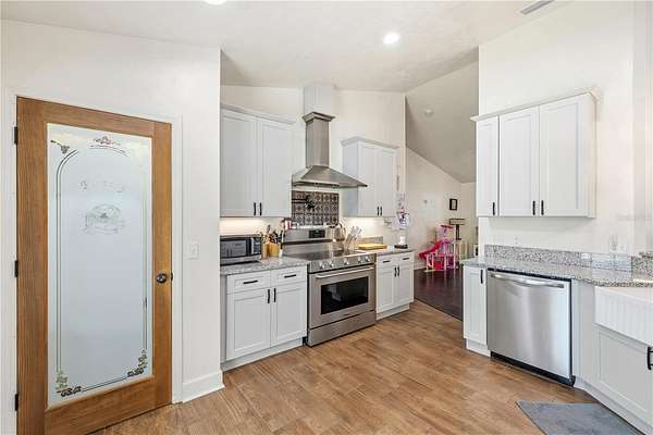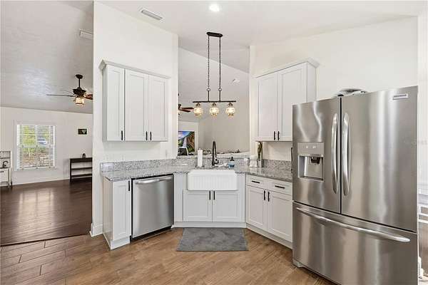 Inside, the home features an updated, modern look with beautiful finishes throughout. The spacious kitchen is a standout, complete with granite countertops, a farmhouse sink, and stylish cabinetry, ideal for both everyday living and entertaining. The open layout creates a bright, welcoming feel that's both functional and comfortable.