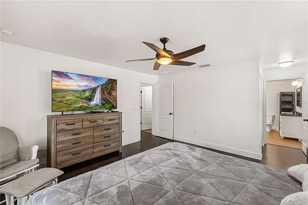 - Ceiling Fans(s), Open Floorplan, Primary Bedroom Main Floor, Split Bedroom, Stone Counters, Thermostat, Window Treatments