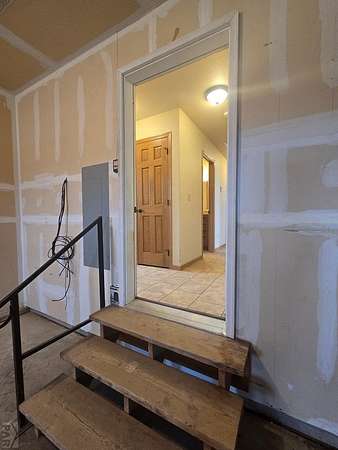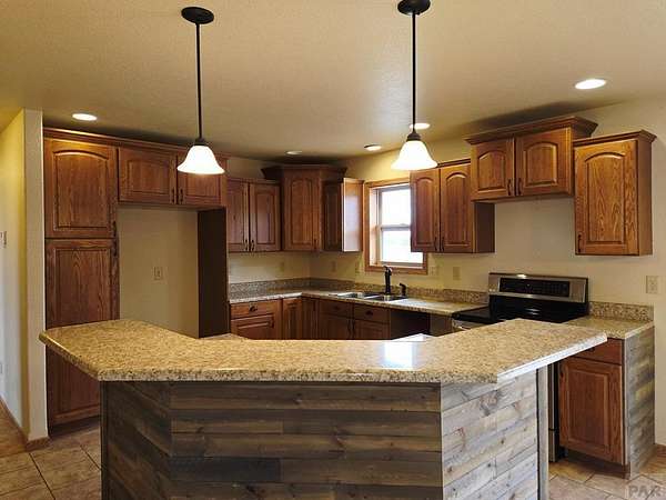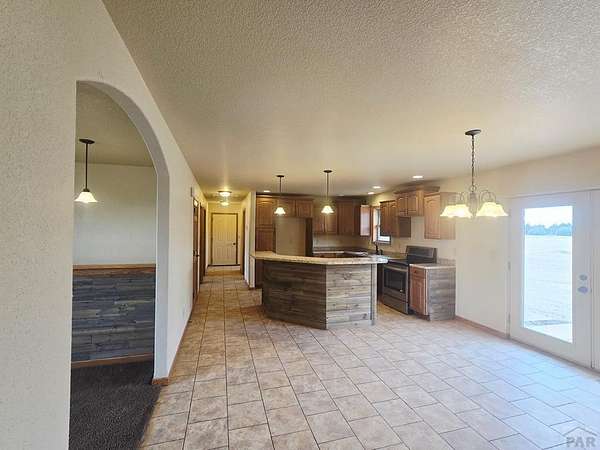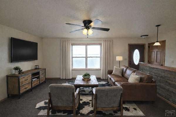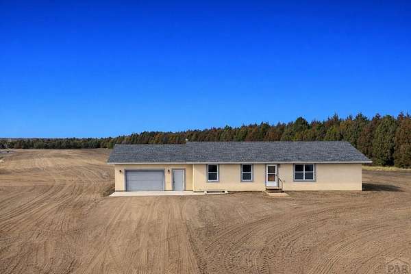 Rare opportunity to own a newer, CUSTOM built home on 5 acres offering a true country lifestyle with room to grow. Built in 2016, this thoughtfully designed ranch-style home combines comfortable main-level living with expansive basement space. The main level features an open, functional layout filled with natural light and views of open farm ground from the front door. The kitchen includes custom cabinetry, a center island with bar seating, and durable finishes suited for everyday living. Solid wood doors, barnwood accent walls, tile flooring, and large windows add warmth and character throughout. The primary suite offers a walk-in closet and a well-appointed bath with double sinks and custom cabinetry. The mostly finished basement adds significant usable living space, including a large family room, game and entertainment area, two bedrooms with egress windows, and a finished bathroom with a walk-in shower. With concrete floors and trim and doors remaining, the lower level is ready for immediate use while allowing future customization. Outside, the acreage provides flexibility for animals, hobbies, equipment, and recreational toys. A neighboring windbreak offers natural shelter and privacy from prevailing winds on two sides, enhancing the usability and comfort of the property. An attached two-car garage, stucco exterior, AND newer domestic well complete this offering. A rare opportunity for country living and room to make it your own. Some photos have been virtually staged.