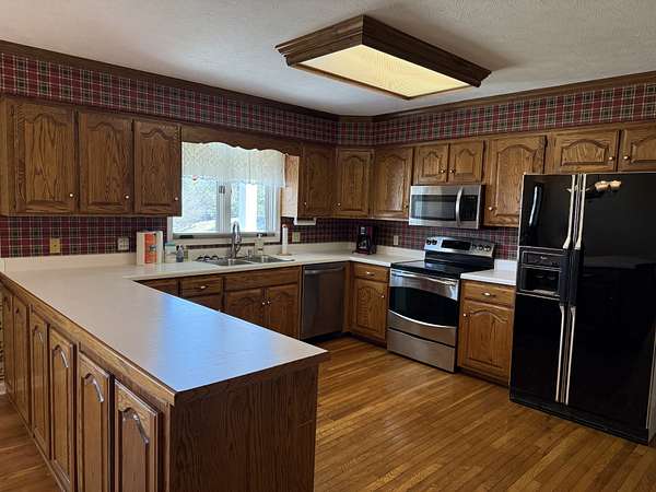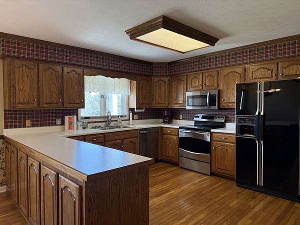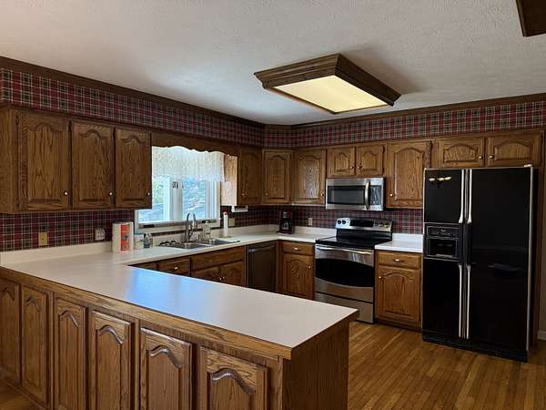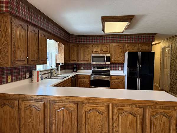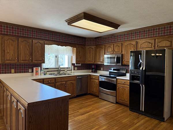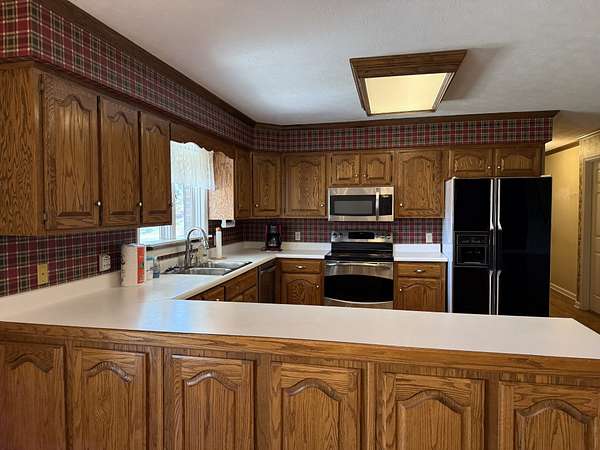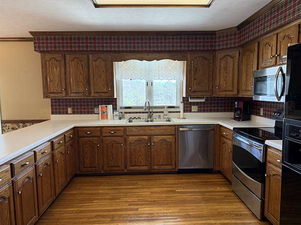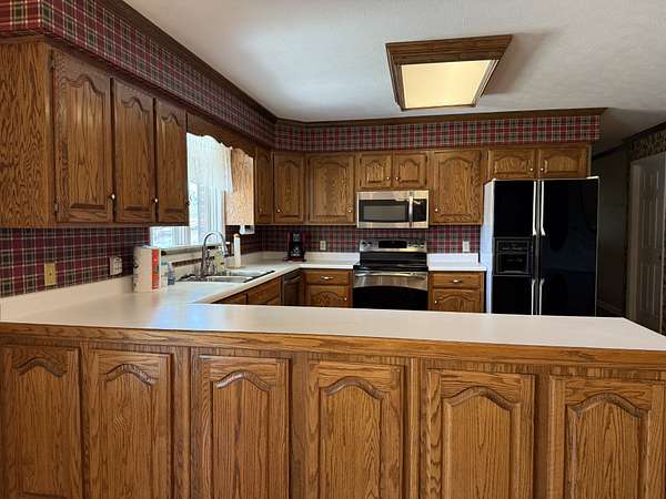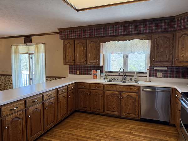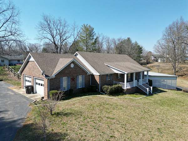 Est $2,282/moVery well built brick home on 2.68 Acres with 2 car garage, huge 36x40 carport, partially finished basement (660 sq ft)plus 15x30 workshop in basement. Covered front porch with pretty views, private back covered patio with small fenced area for pets. Home has oak cabinets, 3rd bath in basement, 2 paved driveways leading to each end of home plus a Generac whole house generator. Mostly open rolling to level lots with landscaping and 2 paved driveways. This well built home is ready for redecorating to make it yours!