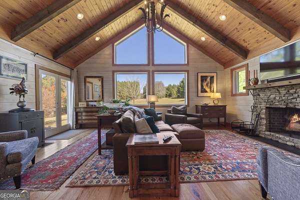 Tucked away on 38 private acres, this one-of-a-kind property offers the kind of peace and breathing room that's getting hard to find- yet it's set up to truly use and enjoy. A road winds around the perimeter and through the land, making it perfect for ATV rides, walking trails, and easy access to every corner of the property. The landscape is beautifully diversified, with a mix of open areas, pasture ground, mature trees, and rolling terrain, creating a setting that feels like a mountain-style retreat with an overlook vibe. At the heart of it all is a country cottage-style home with an easy, functional single-level floor plan, featuring updated, upgraded finishes designed for comfort and everyday living. Multiple fireplaces add warmth and charm throughout the home, making it equally inviting for cozy nights in or gatherings with friends and family. Outdoors, you'll love the expansive acreage views and the picturesque 1-acre pond, complete with a swing - an ideal spot for quiet mornings, fishing, or sunset unwinding. Perched on the hillside above the pond is a charming one-room cabin known as "The Treehouse" featuring its own fireplace, kitchenette, and bath - perfect as a guest retreat, creative escape, or private getaway. The property's barn includes a climate-controlled storage and work area, adding serious versatility whether you're a sportsman, hobbyist, or simply need secure, conditioned space. From quiet mornings to weekends filled with friends, this is a rare blend of privacy, recreation, and entertainment-ready living - a true legacy property.