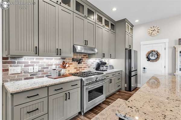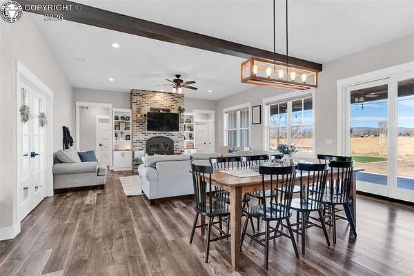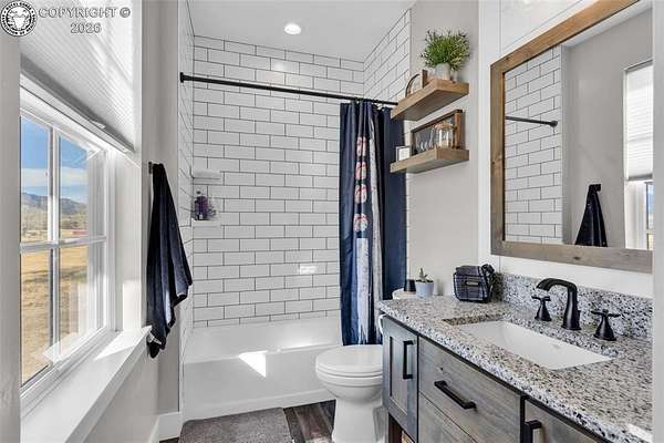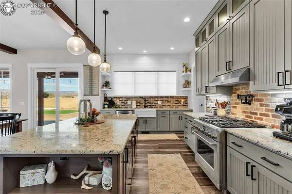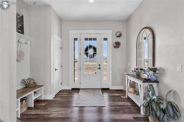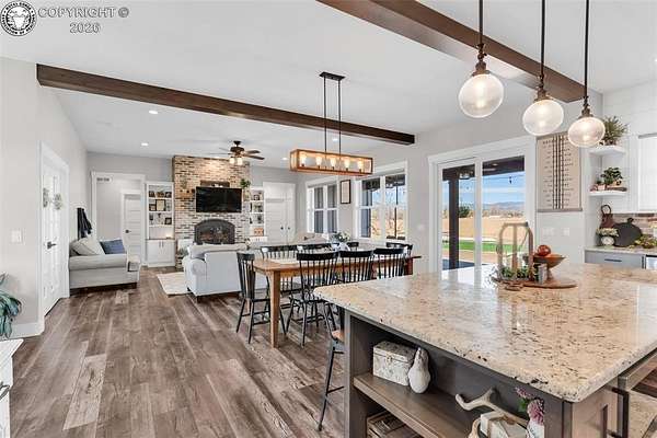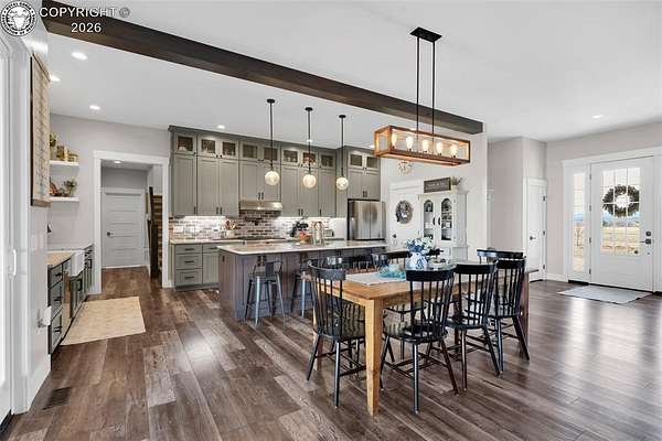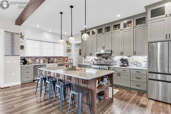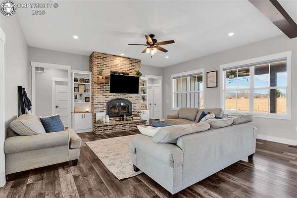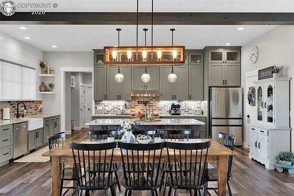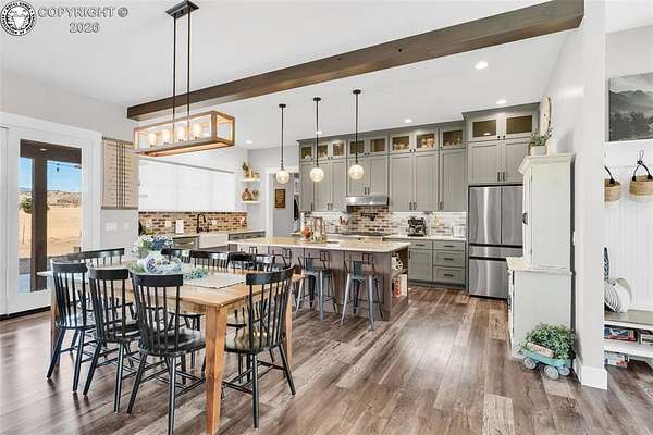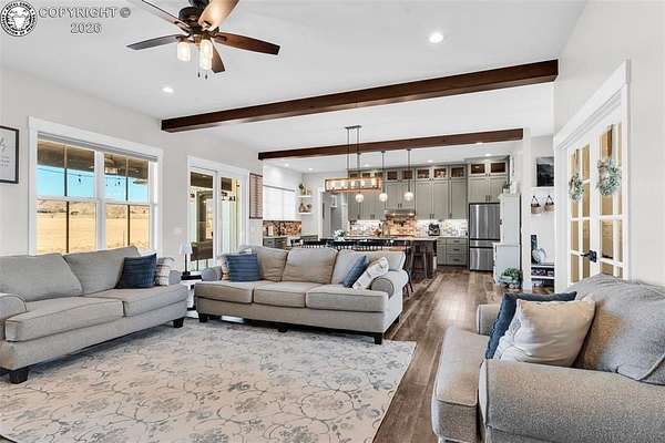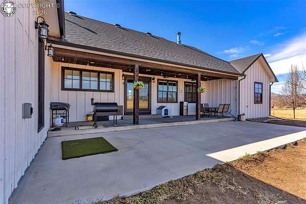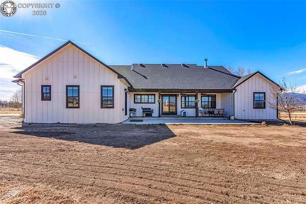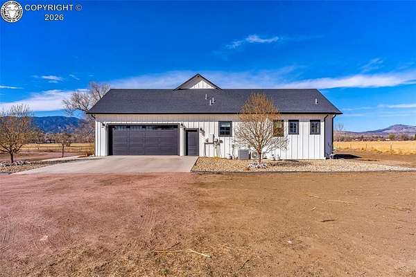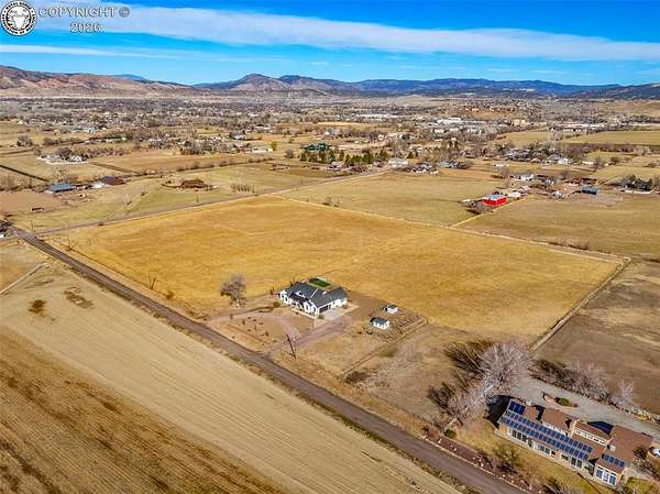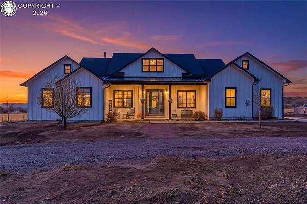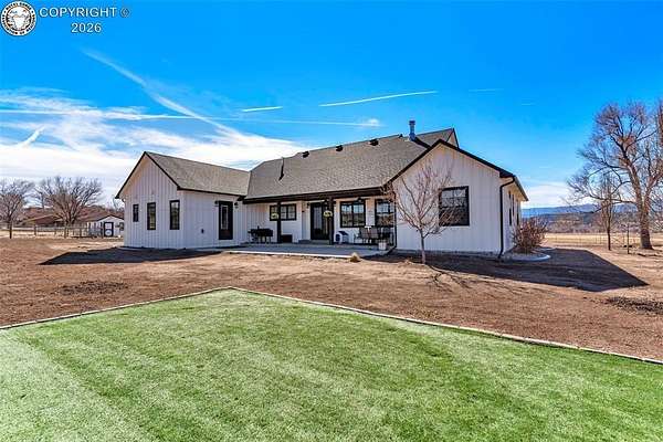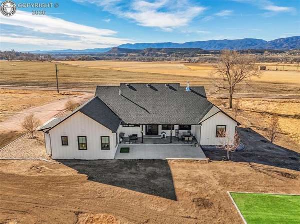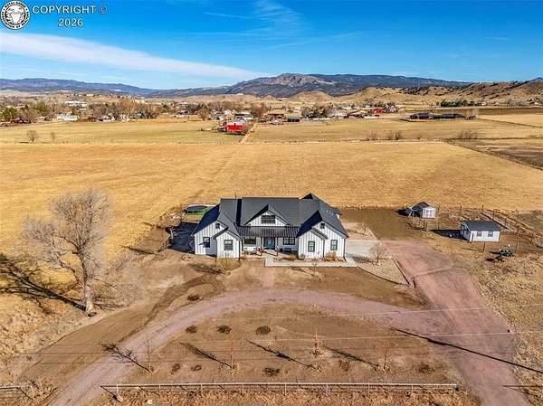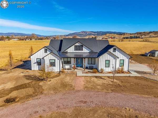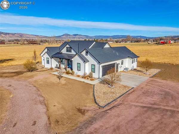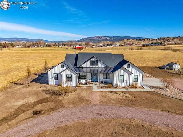 Experience the perfect blend of modern farmhouse charm and Colorado country living on this stunning 14-acre property in Canon City, Colorado. Built in 2021, this custom home offers high-end finishes, thoughtful design, and breathtaking panoramic views while providing the space and flexibility buyers are searching for. Inside, the home features custom-built cabinetry throughout, paired with top-of-the-line appliances including a professional 6-burner gas range with convenient pot filler. The spacious kitchen is designed for both entertaining and everyday living, complete with a huge walk-in pantry, beautiful countertops, and expansive windows that bring in natural light and showcase the surrounding landscape. The open living area is warm and inviting with a wood-burning fireplace, large windows, and custom details such as built-in hall coat racks and an impressive 8-foot entry door. The primary suite offers a peaceful retreat with a large walk-in shower and well-appointed finishes. Don't forget the upstairs bonus room which provides a space for entertaining. Step outside and enjoy the true Colorado lifestyle with covered front and back porches, perfect for relaxing while taking in the stunning mountain and valley views. The property is set up for rural living and productivity with 14 irrigated acres producing approximately 1,200 bales of hay annually, supported by 720 Grandview Ditch water shares and a yard sprinkler system utilizing ditch water. For those seeking an investment, the land can also be sub divided into 3 parts with a minor subdivision, offering potential future development opportunities. Complete with an oversized two-car garage, stunning views in every direction, and peaceful country surroundings, this exceptional property offers the perfect combination of luxury farmhouse living, productive acreage, and investment potential.
