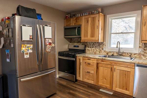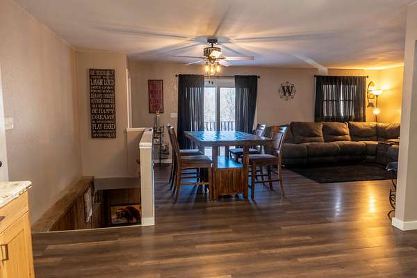 Nestled along the river in a peaceful setting, this beautifully remodeled home offers the perfect blend of comfort and privacy. The exterior features a durable metal roof, new siding, and new gutters, offering both lasting quality and curb appeal.Inside, you'll find countless upgrades throughout, highlighted by a stunning new kitchen and updated bathrooms. An additional office space provides room for productivity, while the attached two-car garage provides everyday convenience.The finished basement features a cozy fireplace that adds warmth and charm, as well as a walk-out patio, great for relaxing and entertaining.This property's plumbing has been updated to a PEX system. Additional mechanical updates include a new furnace, heat pump, and hot water heater. The water softener and propane tank are both owned, adding extra value. The property offers exceptional hunting opportunities. Located in a prime habitat with a proven track record of trophy bucks. Two tree stands are already in place, making it ready for the next hunting season.Whether you're looking for a hunting haven or a move-in-ready home surrounded by nature, this riverfront property offers it all.