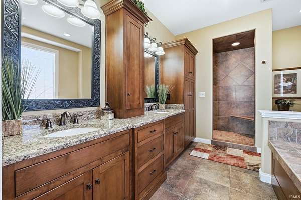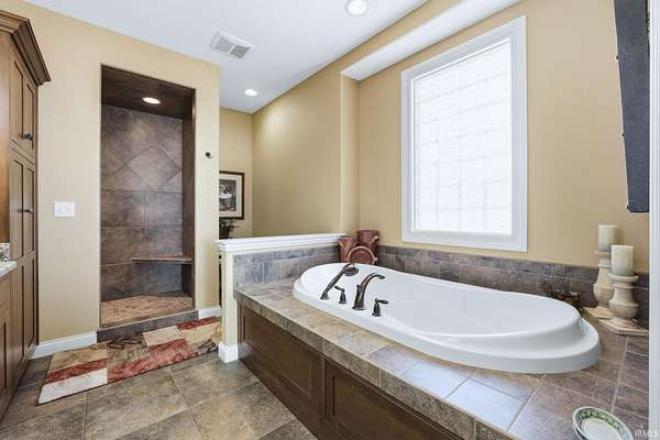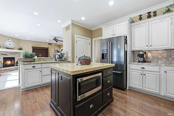 - 1 st Bedroom En Suite, Attic Storage, Bar, Breakfast Bar, Ceiling Fan(s), Ceiling-Tray, Closet(s) Walk-In, Countertops-Stone, Crown Molding, Custom Cabinetry, Deck Open, Dishwasher, Dryer Hook Up Electric, Eat-In Kitchen, Foyer Entry, Garage Door Opener, Garage Utilities, Garage-Heated, Garden Tub, Ice Maker, Jet/Garden Tub, Kitchen Exhaust Hood, Kitchen Island, Landscaped, Main Floor Laundry, Main Level Bedroom Suite, Open Floor Plan, Patio Open, Porch Enclosed, Range-Gas, Range/Oven Hook Up Gas, Refrigerator, Stand Up Shower, Tub and Separate Shower, Tub/Shower Combination, Twin Sink Vanity, Utility Sink, Washer Hook-Up, Water Heater Electric, Water Softener-Owned, Window Treatments, Workshop