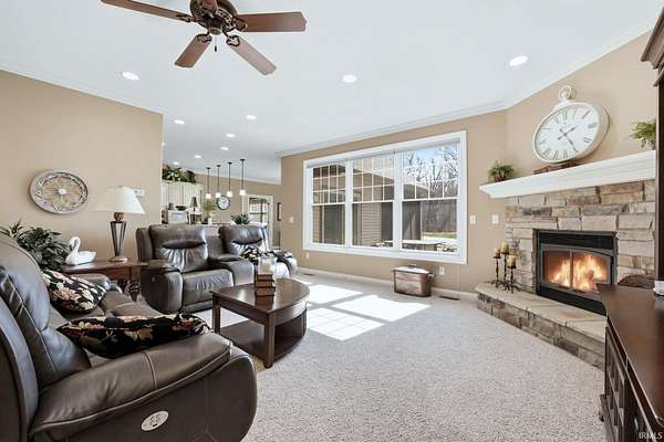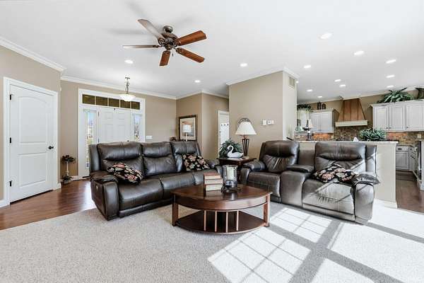 Beautifully maintained home offering the perfect blend of comfort, space, and outdoor lifestyle—selling via online auction April 28th at 6 pm! This inviting property features an open-concept kitchen, living, and dining area with a large island, stone countertops, & stainless steel appliances. The spacious primary suite includes tray ceilings, a private bath with double vanities, tiled walk-in shower, & soaking tub. Additional bedrooms offer flexibility for guests, family, or a home office. Enjoy the outdoors with your own private pond, perfect for relaxing or entertaining, plus nearby lake access for boating and fishing. The property also includes a large pole barn with a finished man cave area, an oversized finished garage with multiple overhead doors, and a walkable attic for extra storage. A rare opportunity to own a property that combines modern comfort, recreational amenities, and private country living. Come see for yourself -- Open house: Sat. 4/18 from 3-4 pm