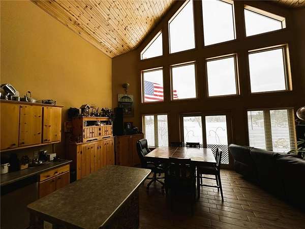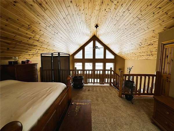 Tucked away at the end of a quiet, dead-end road, this charming 1 1/2 -story, year-round lake home sits on the shores of Horseshoe Lake with over 200 feet of level frontage. Recent updates--including new roofs and LP SmartSide Diamond Kote siding--mean the major improvements are already complete. Inside, you're welcomed by vaulted tongue-and-groove ceilings, a striking wall of windows with sweeping lake views, custom log railings, and a cozy up-north feel throughout. The home offers two bedrooms, two bathrooms, main-floor laundry, and a sunroom that could easily serve as a third bedroom. The partially unfinished basement includes an egress window and newer HVAC system, providing room to expand. An oversized two-car garage features an unfinished lakeside room ready for your finishing touches. Outdoors, enjoy a gated driveway, fenced yard, lakeside patio, sandy beach, 12' x 20' lakeside storage shed for all your toys, and a convenient carport. This is a must-see lake property.