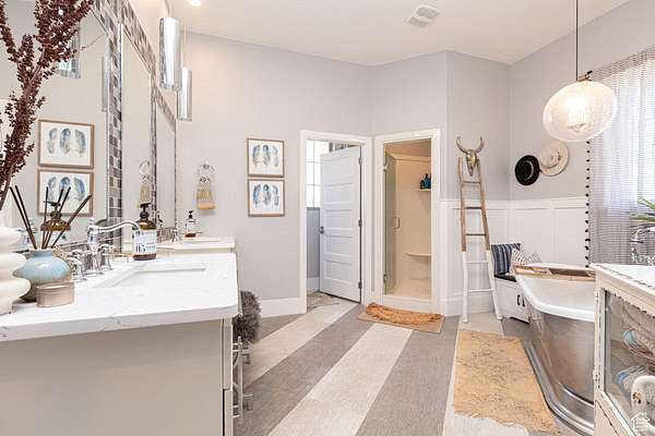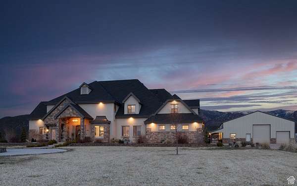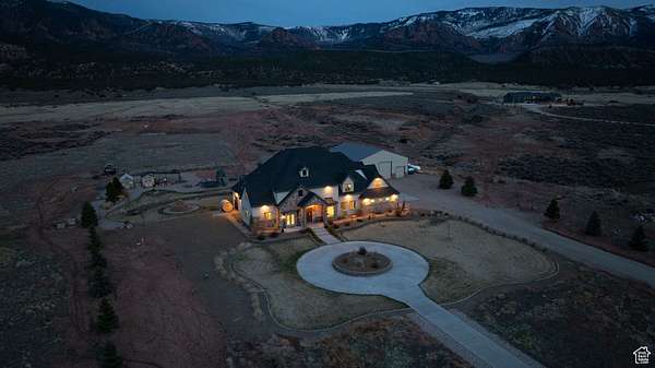 Discover your dream property in this beautifully designed, custom-built home offering approximately 6,300 sq ft of living space, 3000 sq ft shop rough plumbing for apartment. situated on 20 acres with breathtaking views into Shirts Canyon. Built in 2016, this spacious residence combines luxury, function, and flexibility-perfect for a wide variety of lifestyles. Step inside to find a thoughtfully laid-out floor plan featuring seven bedrooms and four and a half bathrooms. The main level boasts three bedrooms, including a generous owner's suite, plus a home gym, a dedicated office, and a formal dining room ideal for entertaining. The gourmet kitchen is equipped with a walk-in pantry, a hidden spice rack, and abundant space for culinary creativity.