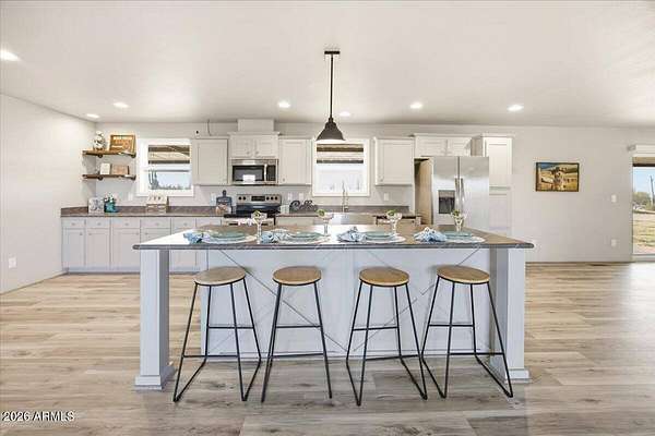 Beautiful Country Living on 5 Acres w Stunning Mountain Views. Experience the Perfect Blend of Peaceful Desert Living & Modern Convenience in this Move-in-Ready 4-bed/2-bath Home set on 5 flat, usable acres. Located on Paved Road with Easy Access to Home. Surrounded by Breathtaking Mountain Views & Iconic Giant Saguaros that create a Truly Authentic Arizona setting. Spacious Homesite offers Endless possibilities bring your horses, start a small hobby farm, store your toys, or Design an Outdoor Lifestyle you've Always wanted. Property is RV-ready with a Dedicated Sub-Electrical Hookup for added Convenience. Enjoy Outdoor Living Year-Round under a Custom-Built, Massive Steel Patio that Spans the Entire length of home Perfect for Entertaining. R U Searching for wide open spaces-this is IT!