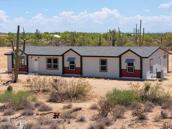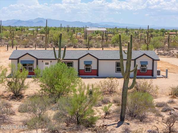 This versatile property offers flat, usable land with its own private water well, surrounded by mature saguaros and natural desert vegetation. The 2023 4-bedroom, 2-bath open-concept ranch-style manufactured home provides modern living in a serene setting just minutes from Marana's fast-growing area. Perfect for horses, hobbies, or building your dream setup. Bring your toys, set up the RV on-site ready to go with the separate sub-electrical pedestal for the RV hookup.
