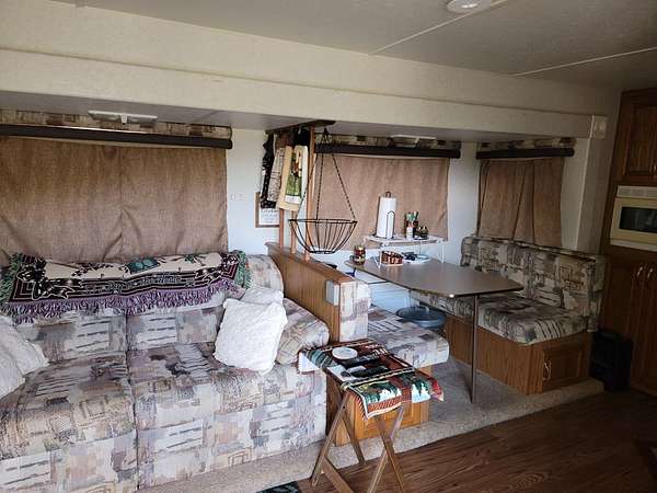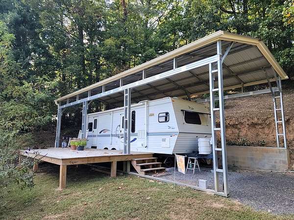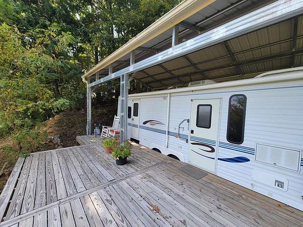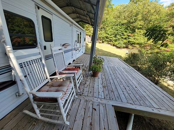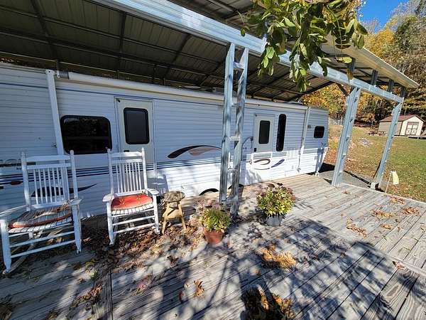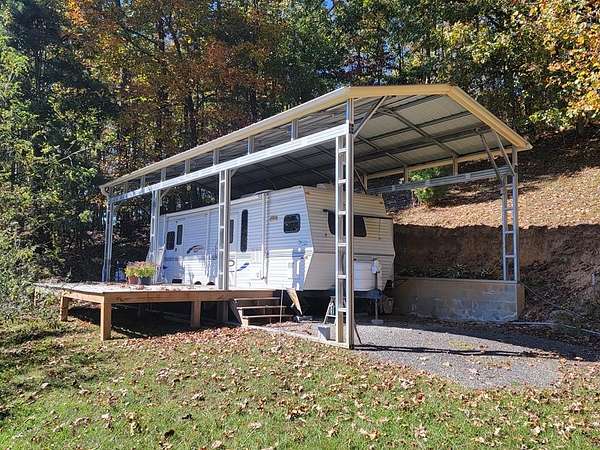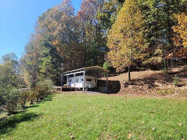 This 3.33-acre property is a dream for campers and horse riders! It features a nice camper, a newer metal carport to cover the camper, and a newer deck where you can enjoy stunning mountain views. Additionally, there's a metal outbuilding, a well, and septic storage tanks. The property boasts a landscaped fire pit area and is partially cleared with wooded sections that include trails throughout. There's also a spacious, level area at the top of the property that could serve as a potential building site with beautiful views. Situated very close to Iron Mountain Horse Camp and the National Forest, this location offers access to hundreds of horse riding and hiking trails. With plenty of options, you can create your own tranquil getaway or build your dream home at the top of the property!