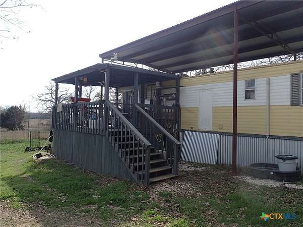 Conveniently located 5 acres property, with a heavily renovated singlewide 2 BR/1 Bath home with three covered wood decks attached. Home has 3 Mitsubishi split systems installed. There is also a 35' x 45' metal building on slab, with two roll up doors, electricity and airlines installed that was previously used as a mechanics shop for tractor repairs. Great building for a workshop, storage or garage. A private well that has a sophisticated filtration system supplies the home. The home has a conventional septic system. There is a small pond on the property that sometimes has water in it. The perimeter boundaries are fenced along with some cross fencing. Currently, the property has HS & DV tax valuations. The only restrictions on the property is whatever Caldwell County development ordinance requires as far as subdividing or number of homes allowed. Several items will not convey unless negotiated separately, such as a tractor, implements and other items. Ask about these items. About 20 minutes to Lockhart, 20 +/- minutes to Luling and about 50+/- minutes to the Austin-Bergstrom Airport.