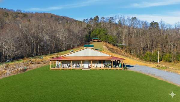 Welcome to 47 acres of absolute tranquility, a rare opportunity for those seeking a retreat in the heart of nature. This unfinished Barndominium presents a canvas ready for you to transform it into a space that reflects your lifestyle and dreams. Imagine stepping onto your front porch each morning to witness the breathtaking sights of wildlife amid the majestic mountains, as the sun rises and sets in a spectacular display of colors.This property boasts ample pasture land, perfect for grazing horses or cattle, and features two additional ideal building sites, allowing for further expansion or the construction of your dream home. The possibilities are limitless, whether you choose to complete the existing Barndominium or use these extra sites to realize your vision for a custom residence.Perched above the Barnominium is a rustic hunting cabin, designed to provide a primitive yet comfortable escape into nature. This space encourages relaxation and reflection, allowing you to disconnect and immerse yourself in the serene environment. If adventure calls, take your side-by-side along the already cleared dirt road to the top of the hill, where stunning mountain views await, perfect for both exploration and hunting.The Barndominium is equipped with a fully functioning kitchen and a complete bathroom, with plumbing already installed, offering a solid foundation for your ideas. There are a few AI generated pictures at the end of photo gallery showing the potential of the finished home. The design emphasizes flexibility, providing the option to finish the interior to your specifications or to repurpose the structure entirely. Whether you envision a workshop, garage, or bunkhouse, you have the freedom to create a space that meets your needs.The current owners originally intended to complete this project but have chosen to relocate closer to family. This presents a unique opportunity for the next owner to step in and carry forward the vision, or to embark on a completely new one. The property is not just a piece of land; it is a sanctuary where you can craft your individual escape from the fast-paced world. With such generous expanses of land and natural beauty at your disposal, it is an ideal setting for those who value peace and connection to the outdoors. Don't miss this chance to make this property your own; the potential here is truly remarkable.