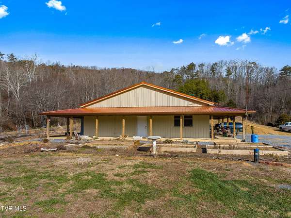 Fantastic range of opportunities with this unrestricted 47.18 acre tract that seems a world away but actually sits in a beautiful easy access hub that makes it a convenient heart of an amazing homestead or provides potential for your dream venture - an event venue, possible campground development or even a cabin rental business. A long driveway provides privacy from the street. There are stunning long range views reaching as far as Bays Mountain and several level house sites that could be developed. An almost finished barndominium has had all the hard work completed: well and septic are in place, electricity is connected and wiring is in. The walls have 6'' of insulation already in place. The kitchen is functional and there is a finished bathroom and laundry space. There is propane heat in place and high-speed internet for working from home. The home just needs your sheetrock or wood wallboard to make it complete. There is a heavy footer in place allowing you to build a fireplace in the main room. The main room is left open, giving you the freedom to place walls and frame new rooms as you please. There is a wraparound porch to take in those incredible views and welcome guests. An attached garage space could easily function as a workspace or be finished to add another 800 square feet of finished space. The property is already fenced with roughly 15 acres of pasture already cleared and ready for livestock. There is an large chicken coop and an additional storage shed. Farther up the hill is a tiny house type cabin with a generous front porch, also featuring stunning long range views. There are multiple springs on the property and also public water available at the road. The house is within 10 minutes from public access to Cherokee Lake, which is nearly 50 square miles of water famous for fishing, boating, and camping. Also within a 10 minute drive is the historic, thriving downtown of Rogersville, TN known for its incredible local eateries and Civil War era buildings. Knoxville is an easy drive of a little more than an hour and the Tri-Cities airport is less than an hour away. This property is the right mix of privacy and accessibility to get your dreams underway. View a property video